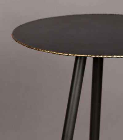 • Guéridon Elia de DUTCHBONE, table d’appoint noire et dorée avec une base en fer robuste, finition dorée brillante et pieds ornés de laiton, Ø 37 x H 59 cm.