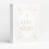 A Love Story est recouverte d’un tissu blanc avec du texte en feuille d’or.