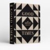 Good Times Triangles est recouvert de textile beige avec un ton rose clair et un texte imprimé en or.
