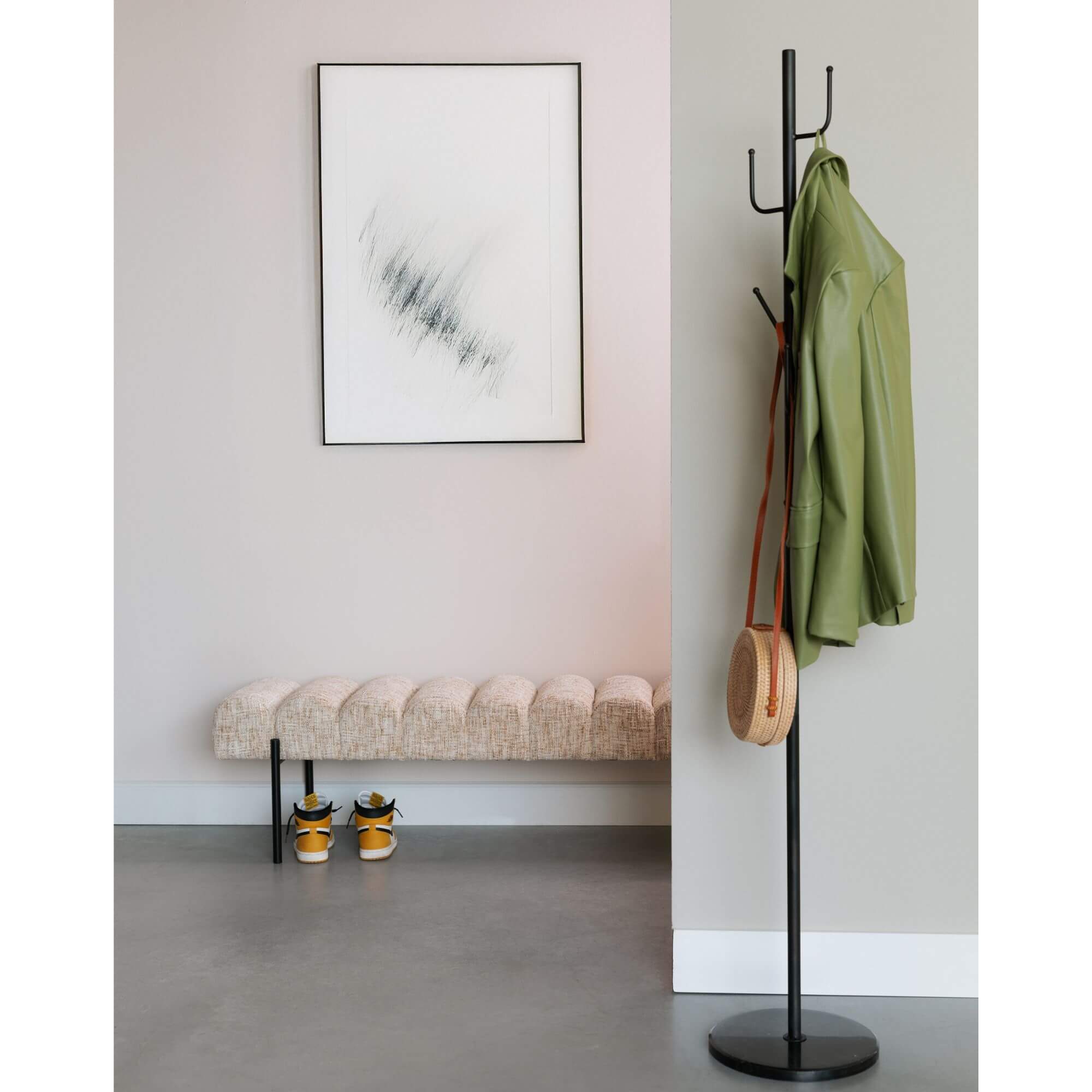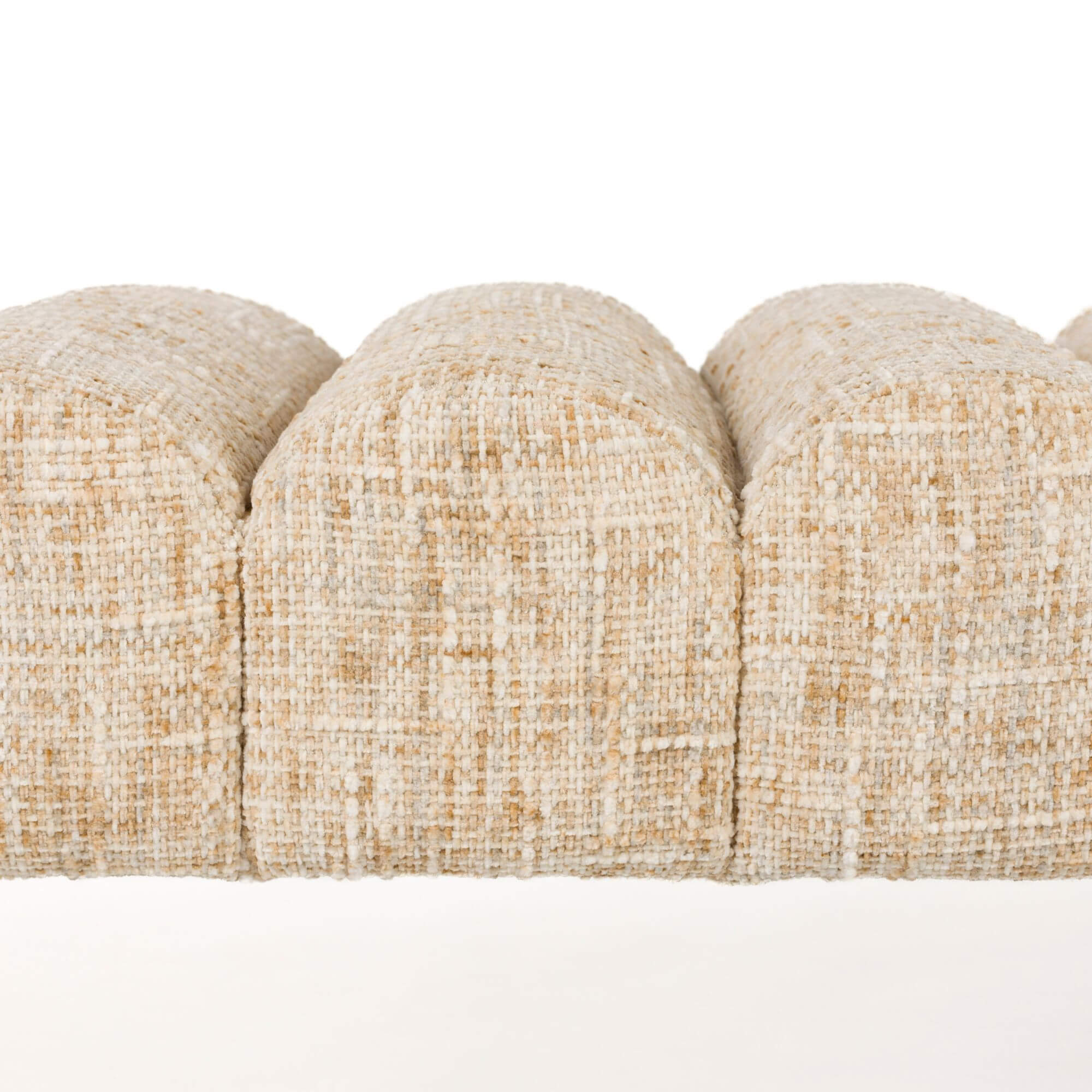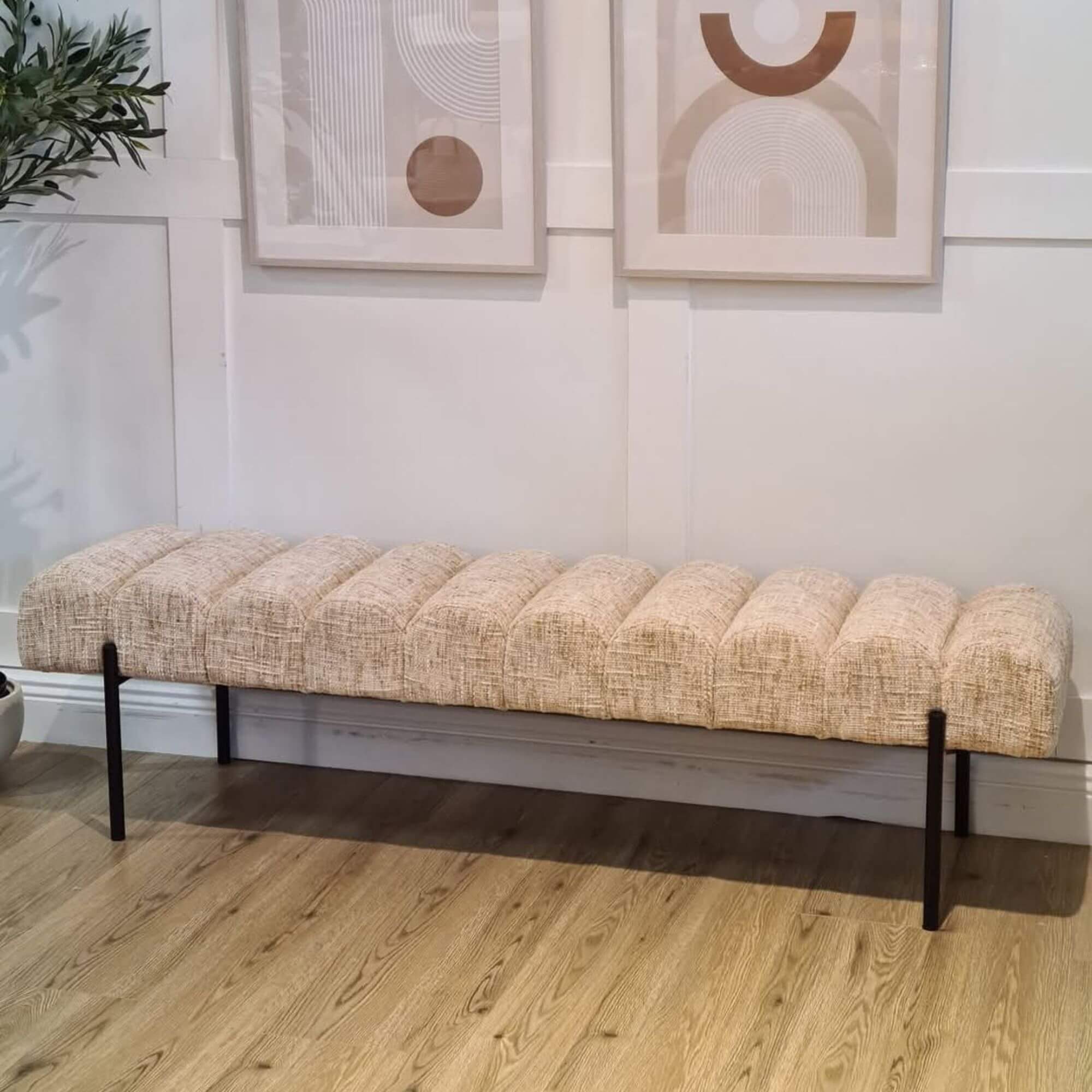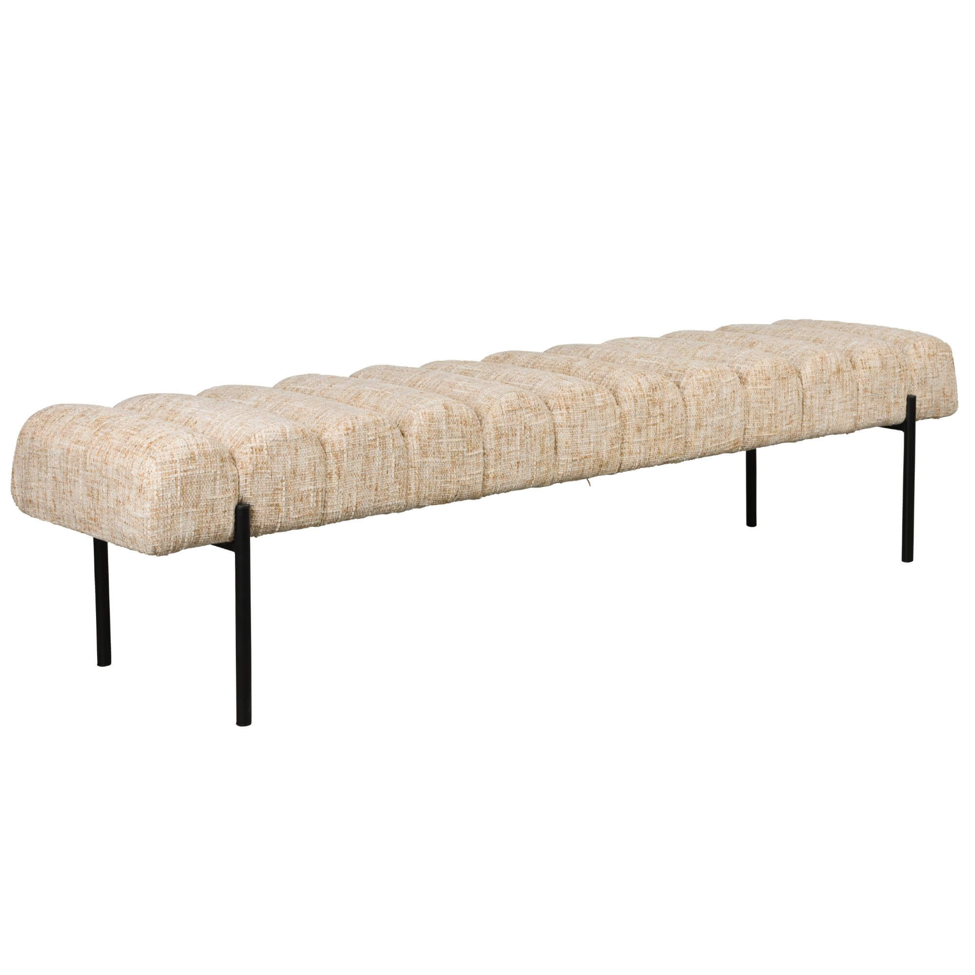 Son piètement épuré en métal noir contraste subtilement avec le tissu pour un rendu chic et moderne. Solide, confortable et esthétique, ce banc est aussi pratique qu’élégant. Un véritable atout déco qui se glisse partout avec style !