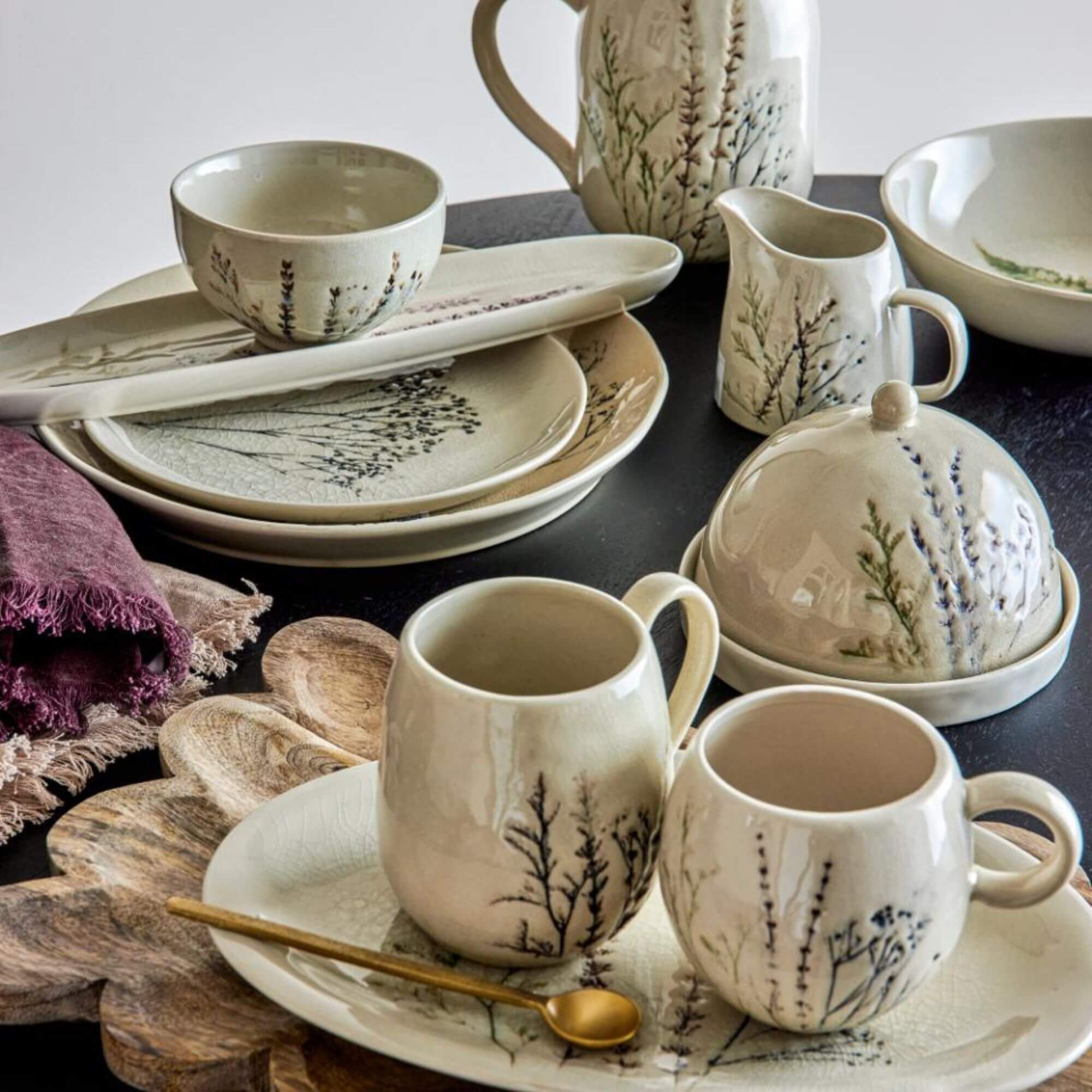 Le beurrier Bea, en grès, est ornée d’un délicat motif floral peint à la main sur un émail craqué. Parfait pour votre beurre, votre fromage, ou pour stocker plein d’autres petites merveilles dans votre frigo. Chaque beurrier est unique grâce aux détails faits main et à l’émail craqué. Et en plus, il passe au lave-vaisselle, parce qu’on aime les objets beaux et pratiques !