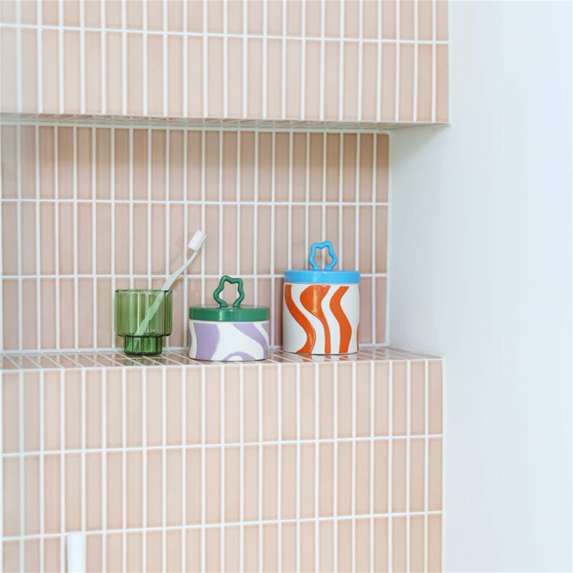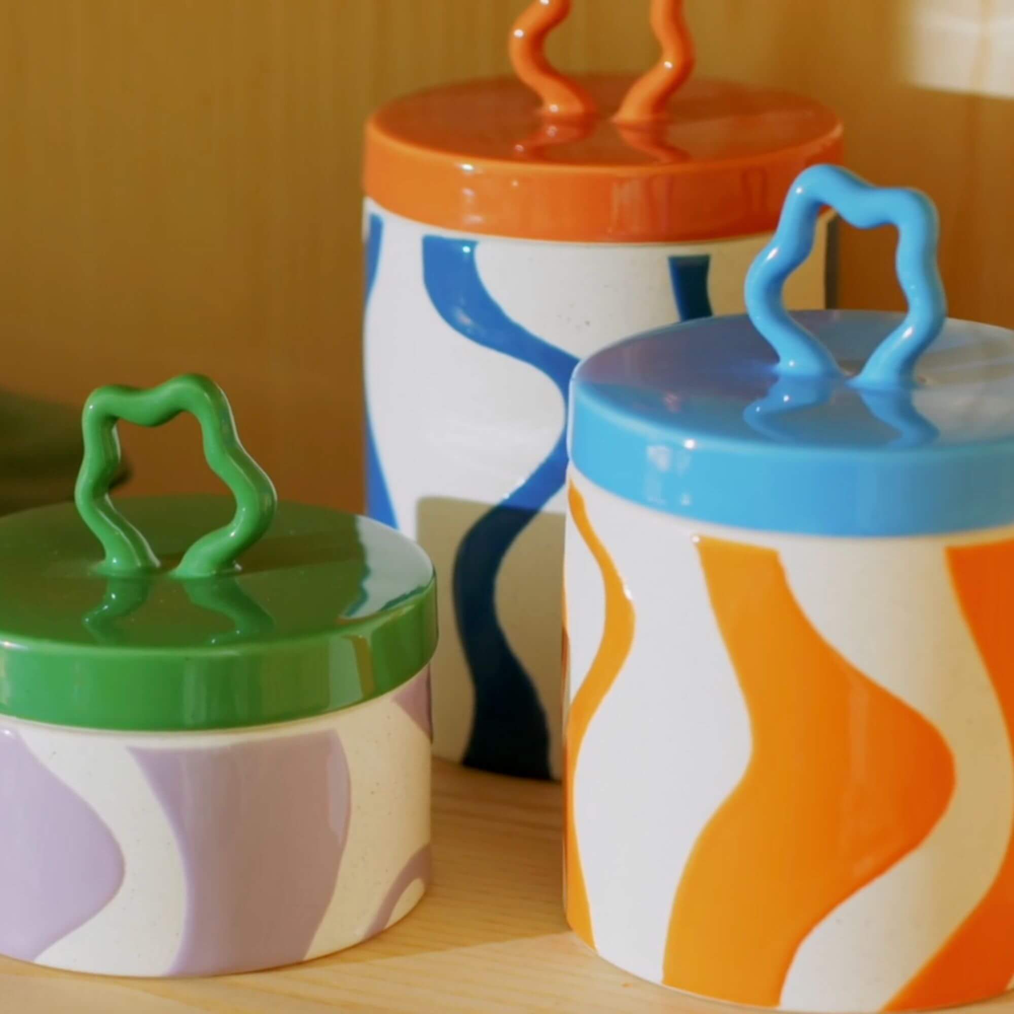 Ce bocal rétro peut être utilisé pour ranger des objets chers à la maison. Le pot a un look des années 70 grâce à ses formes ondulées et à son ambiance funky. Le couvercle coloré est doté d’une poignée graphique élégante et permet de ranger tous les objets en toute sécurité.