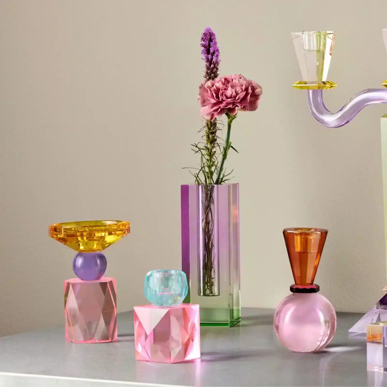 Bougeoir en verre cristal | Rose, Ambre et noir