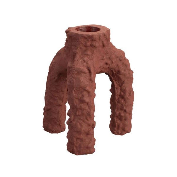Fabriqué en fonte d’aluminium et décoré d’une finition Terracota, cet objet se distingue par son caractère affirmé. Son corps en relief dynamise cette pièce de décoration, tandis que son triple piètement lui assure une grande stabilité.