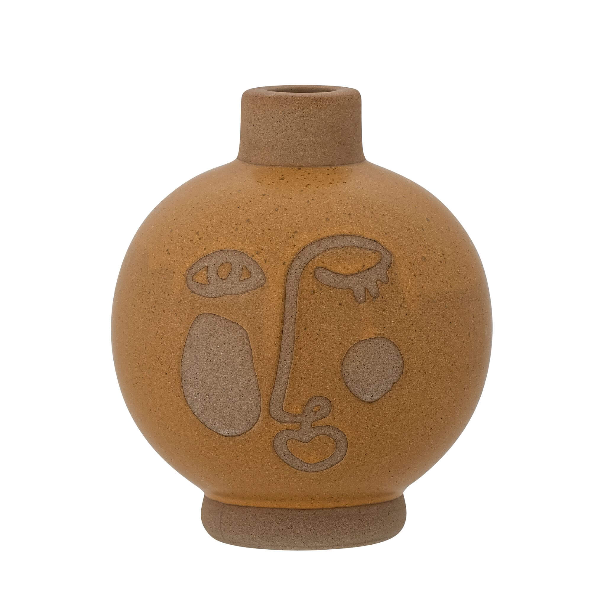 Le porte-bougie Jilian est fabriqué en grès dans une belle forme ronde. Il a un aspect simple et élégant avec un petit visage un peu tordu.