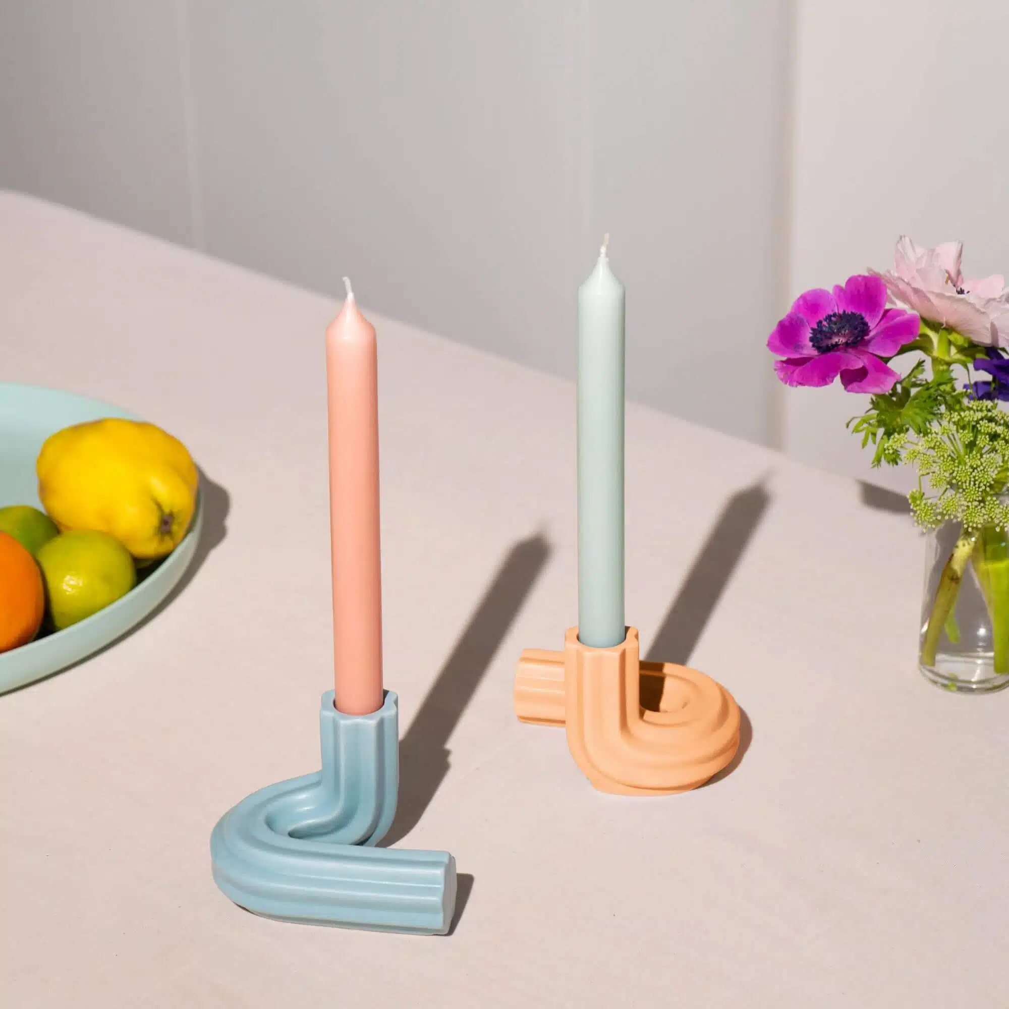 Ces nouveaux chandeliers maîtrisent l’art de l’équilibre et de la tranquillité. Inspirés des piliers des temples anciens, ils sont fabriqués en céramique moulée et présentent une finition mate et lisse qui met en valeur leur silhouette fluide.