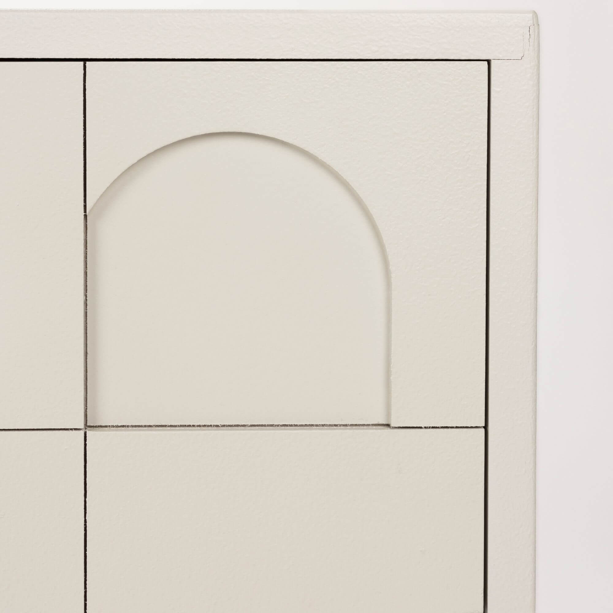 Le buffet Funk allie style moderne et fonctionnalité avec son cadre en bois MDF et pieds en métal beige. Ce meuble de rangement dispose de trois portes et quatre niches spacieuses pour organiser vos objets. Il est équipé d’une fonction passe-câbles au dos, parfait pour un salon, une salle à manger ou un bureau.
