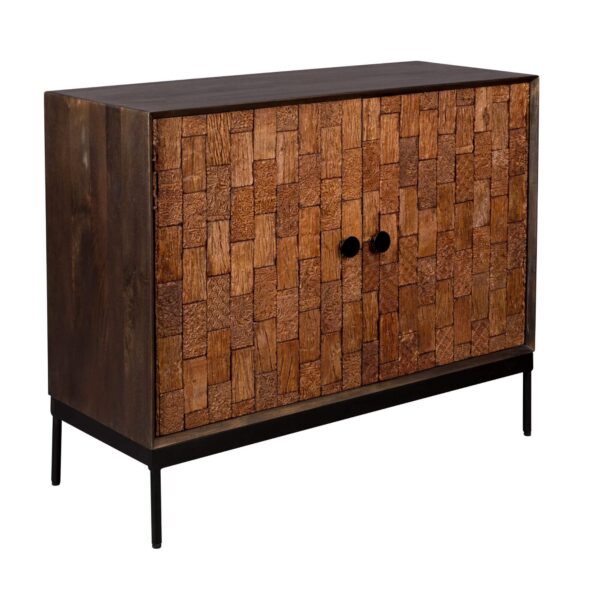 Inspiré des intérieurs des années 50 à 70, le buffet Chisel de Dutchbone allie matériaux de qualité et détails exceptionnels. Fabriqué en bois de manguier verni, ce meuble se distingue par ses portes sculptées à la main avec des motifs uniques, mettant en valeur un savoir-faire artisanal. Monté sur un cadre et des pieds en acier poudré, il comprend deux étagères pratique