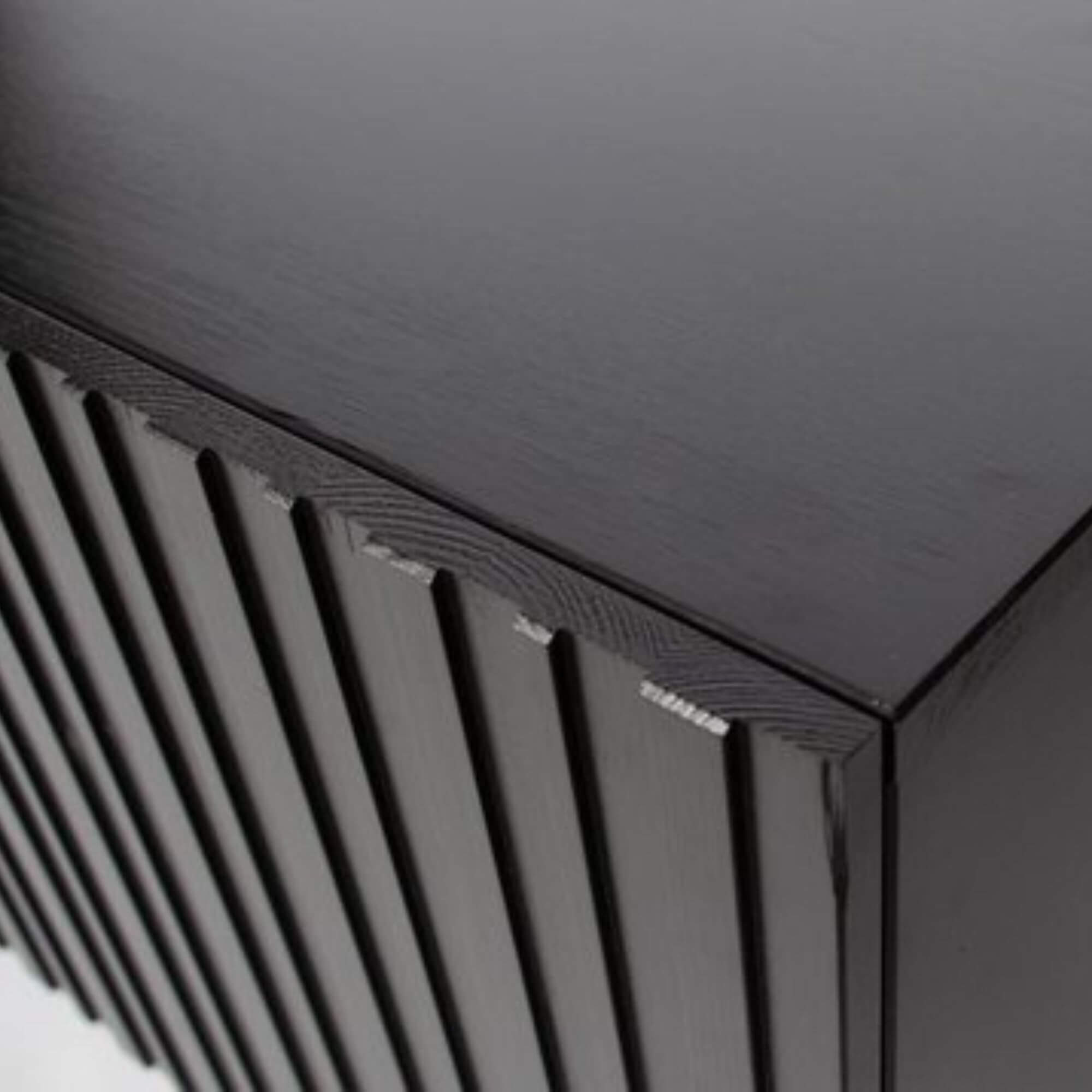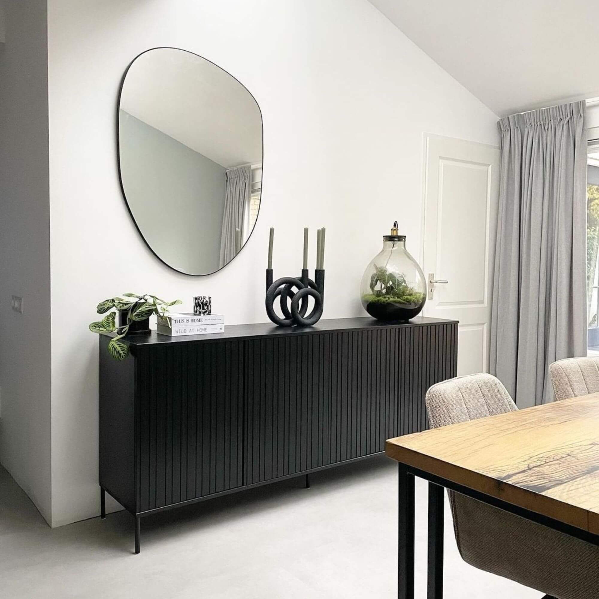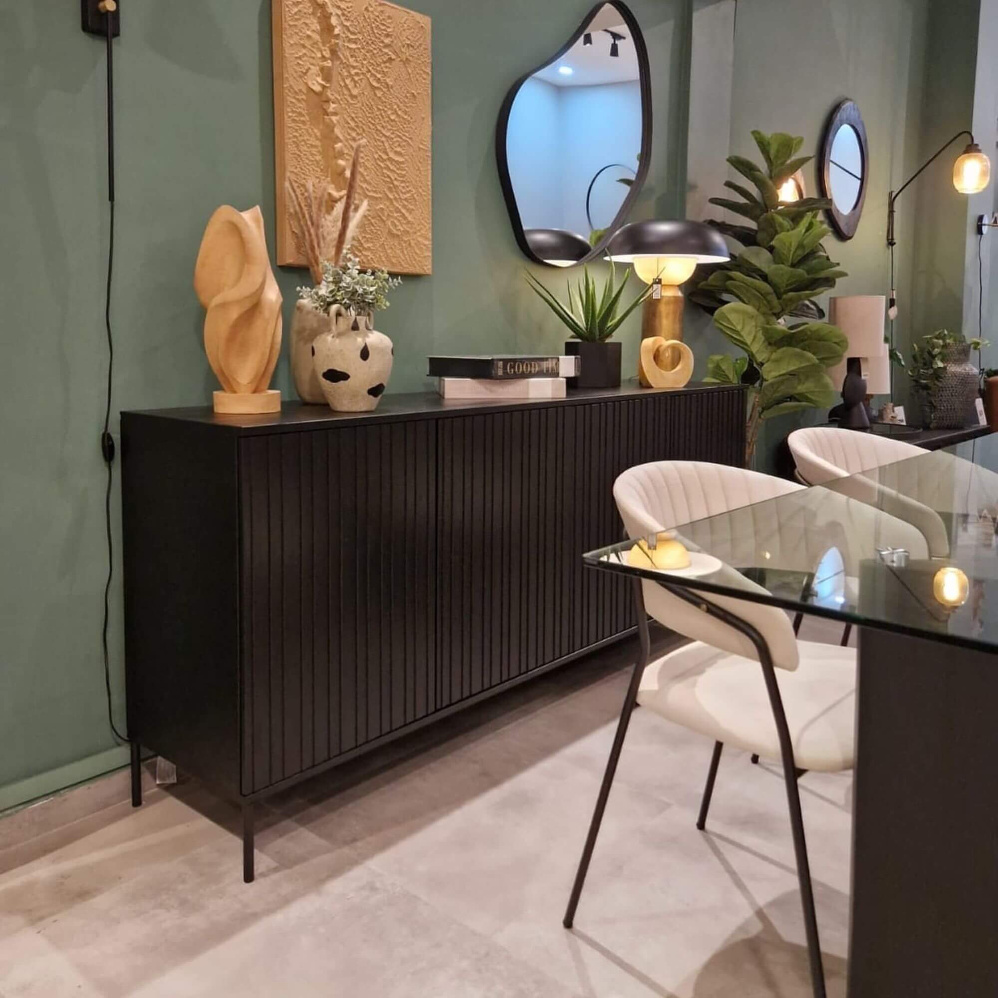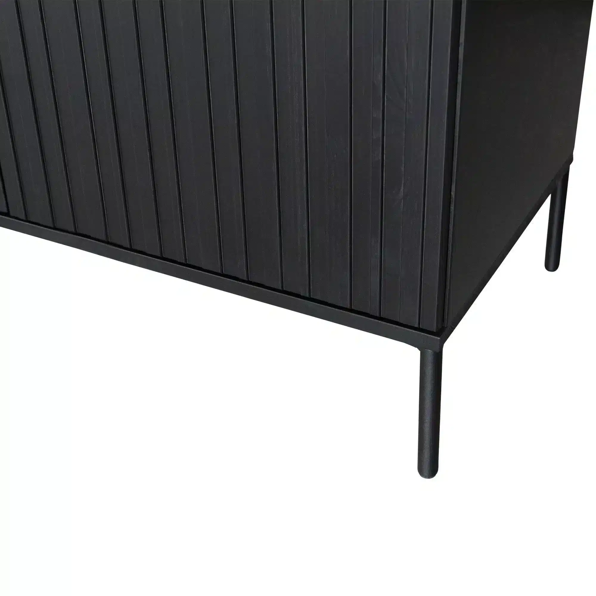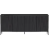 Fabriqué en bois de pin avec une finition noire profonde, le buffet New Gravure incarne l’alliance parfaite entre style et fonctionnalité. Sa base en métal noir lui confère une stabilité solide et un contraste saisissant. Les quatre portes du buffet sont ornées d’un relief graphique distinctif, offrant à votre espace de rangement une touche d’originalité et de sophistication.