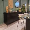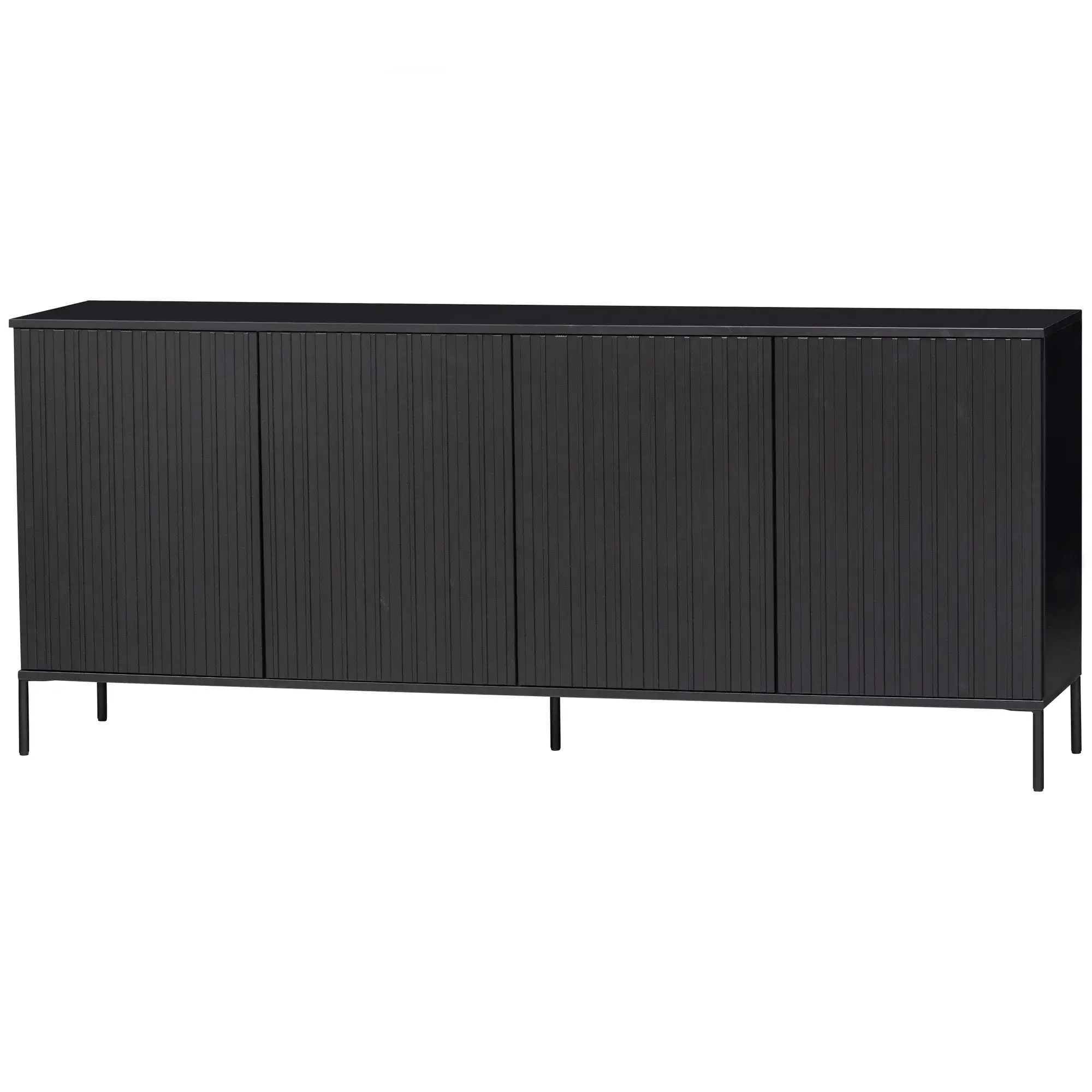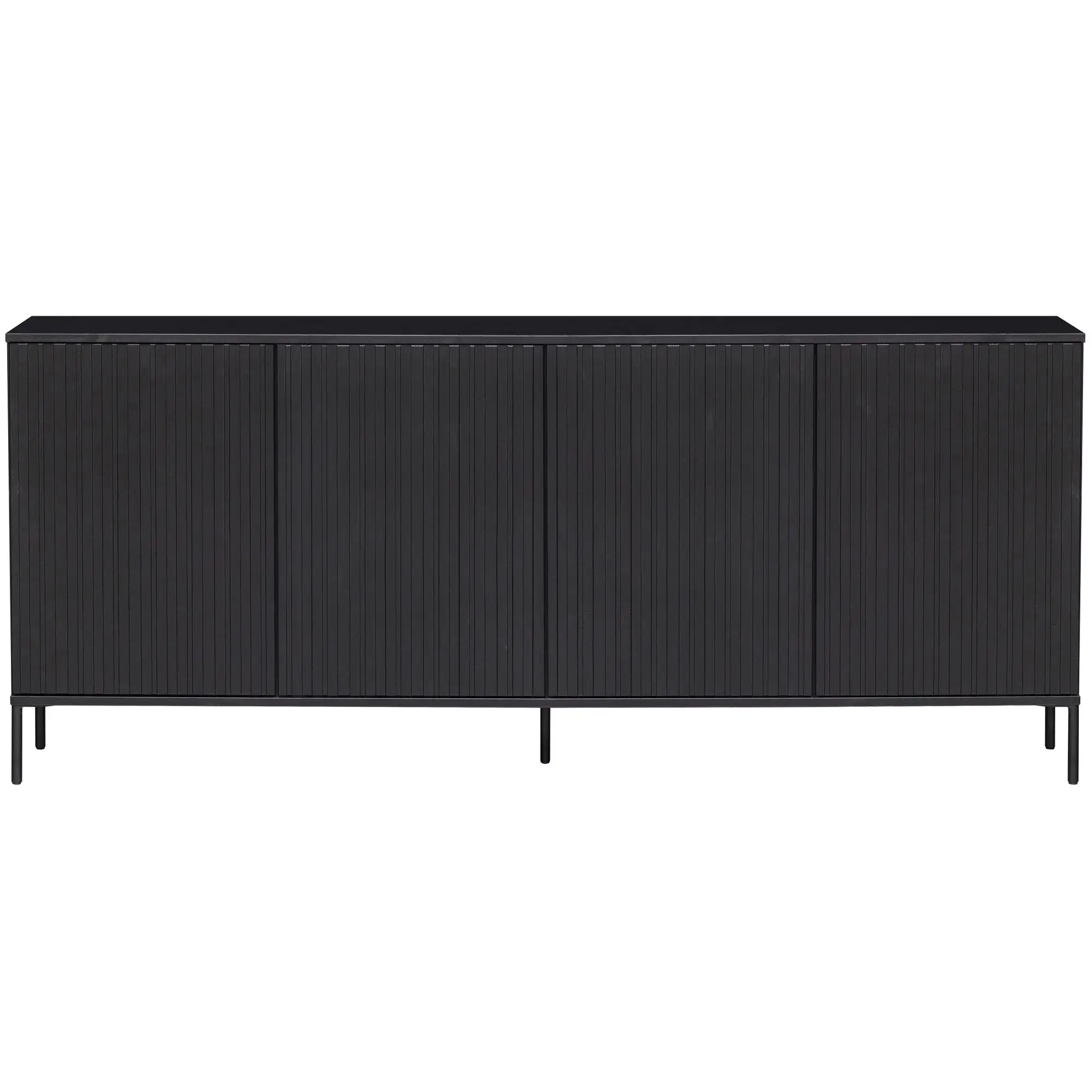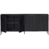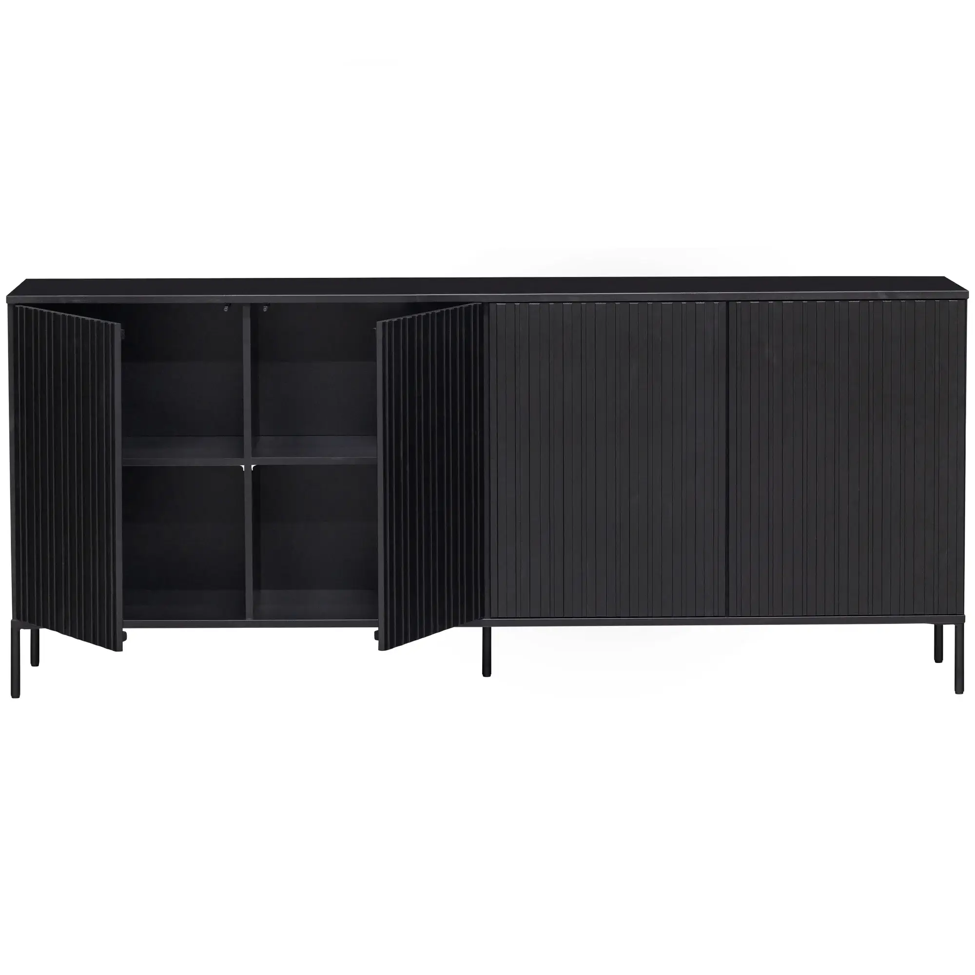 Avec ses dimensions de H 85 cm x L 200 cm x P 44 cm, ce buffet spacieux offre un vaste espace de rangement pour organiser vos affaires avec facilité. Les quatre portes, équipées d’un système d’ouverture par poussée silencieux, cachent quatre étagères amovibles ajustables en hauteur, offrant ainsi une modularité optimale pour répondre à vos besoins de rangement.