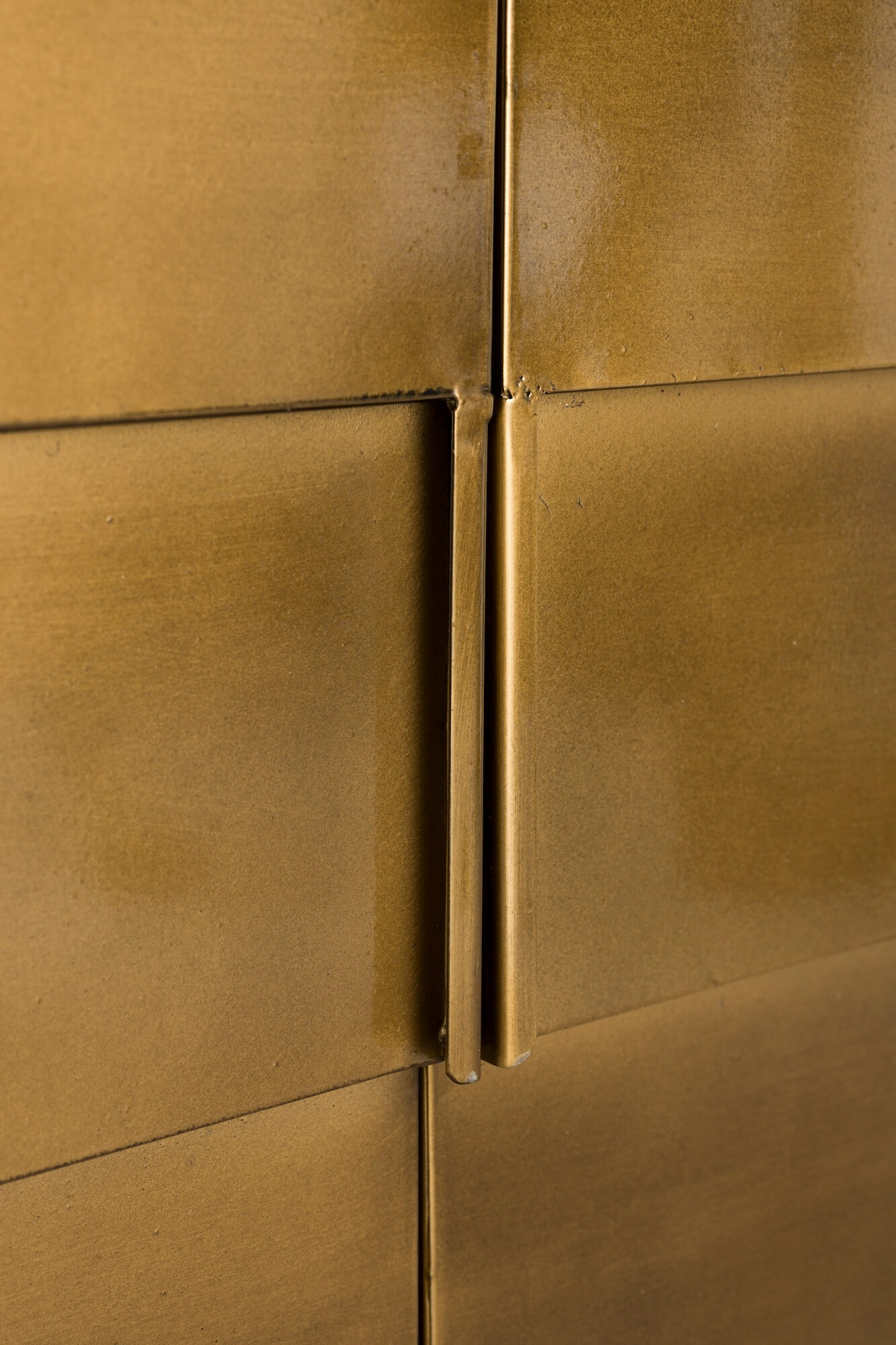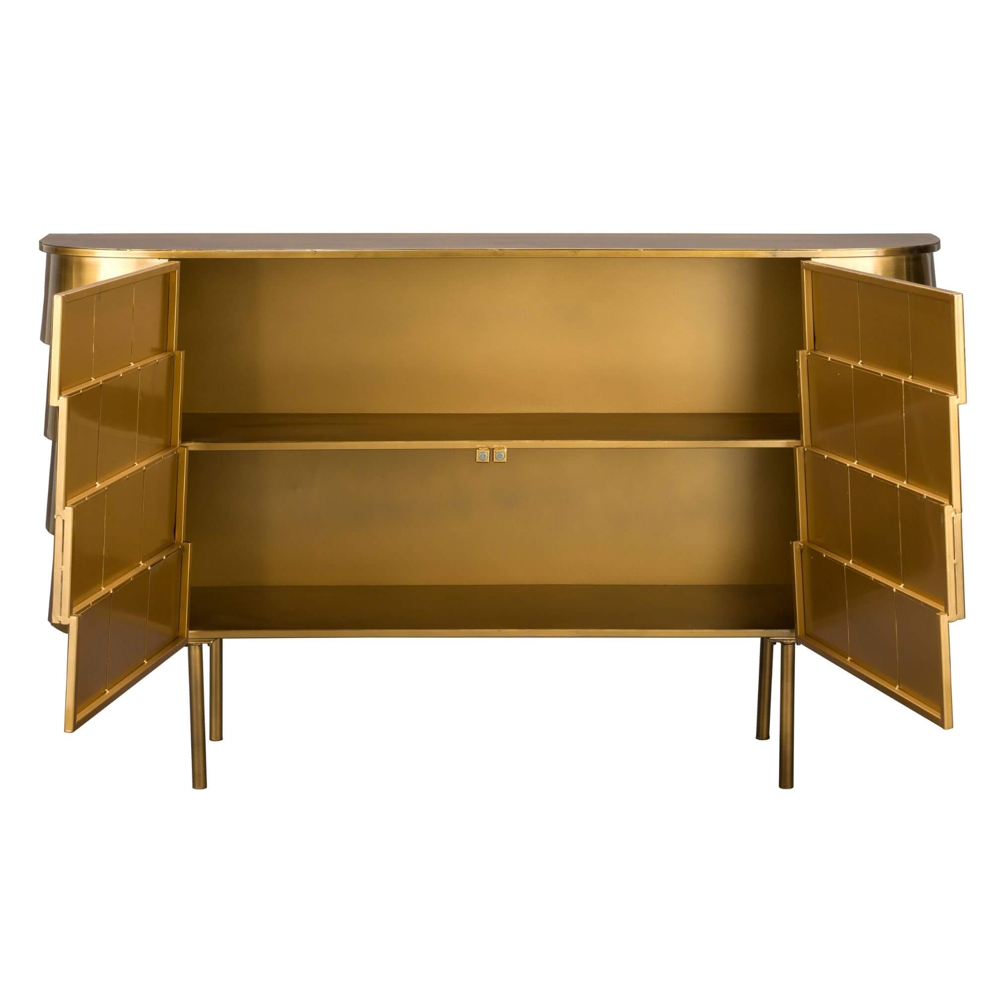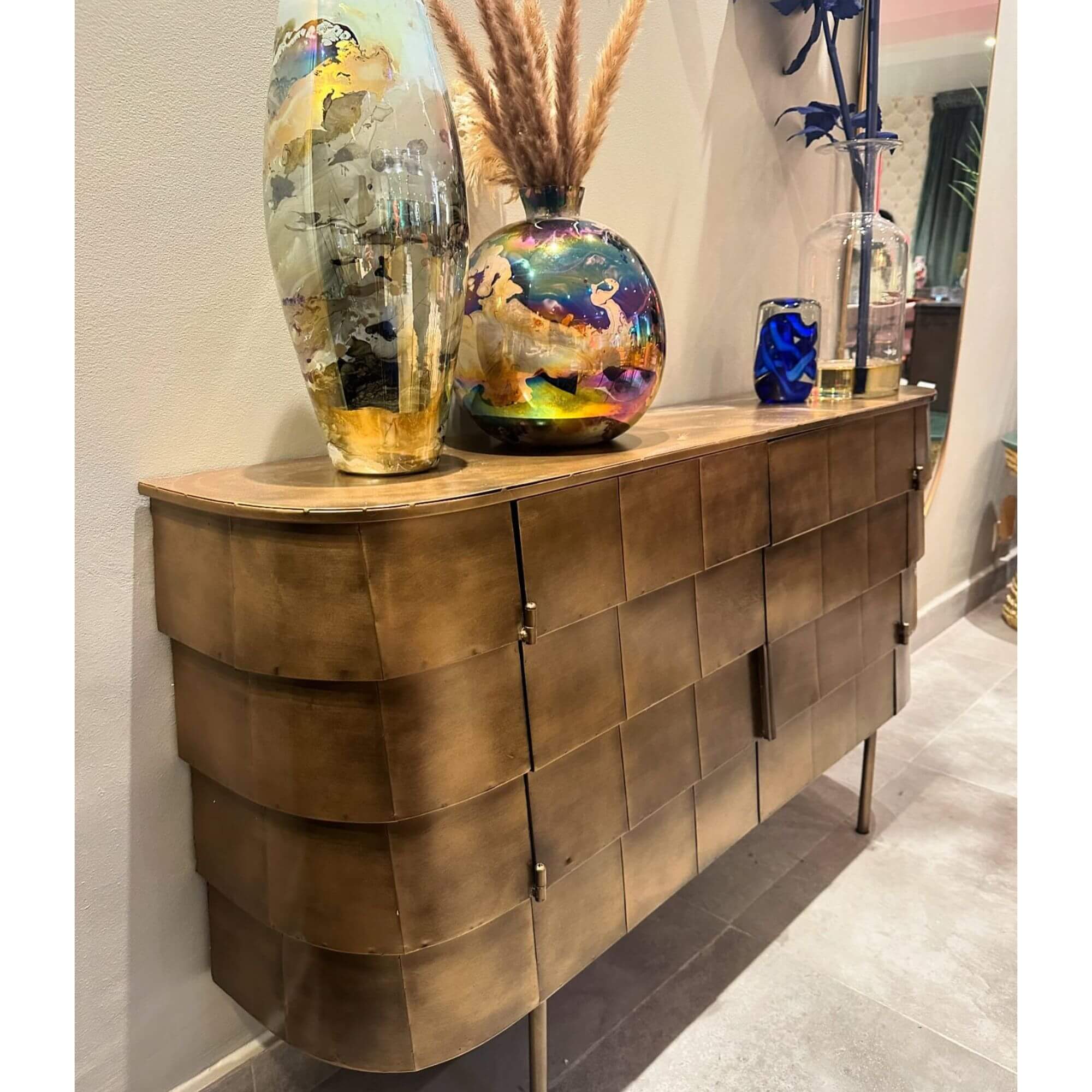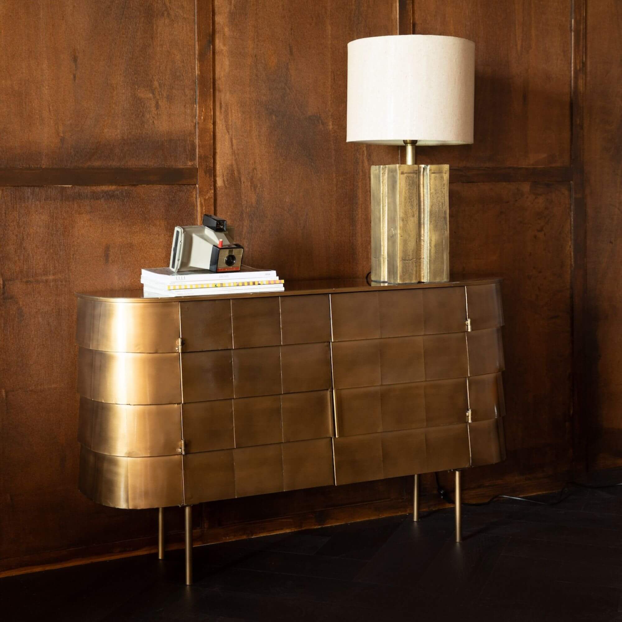 Ce buffet en acier doré, c’est clairement le genre de pièce qui entre dans la pièce… et vole la vedette !
