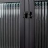 Associées à une armature métalliques grise très sobre, les portes de ce buffet design reçoivent ces magnifiques vitres, qui apportent énormément de luminosité à votre intérieur.