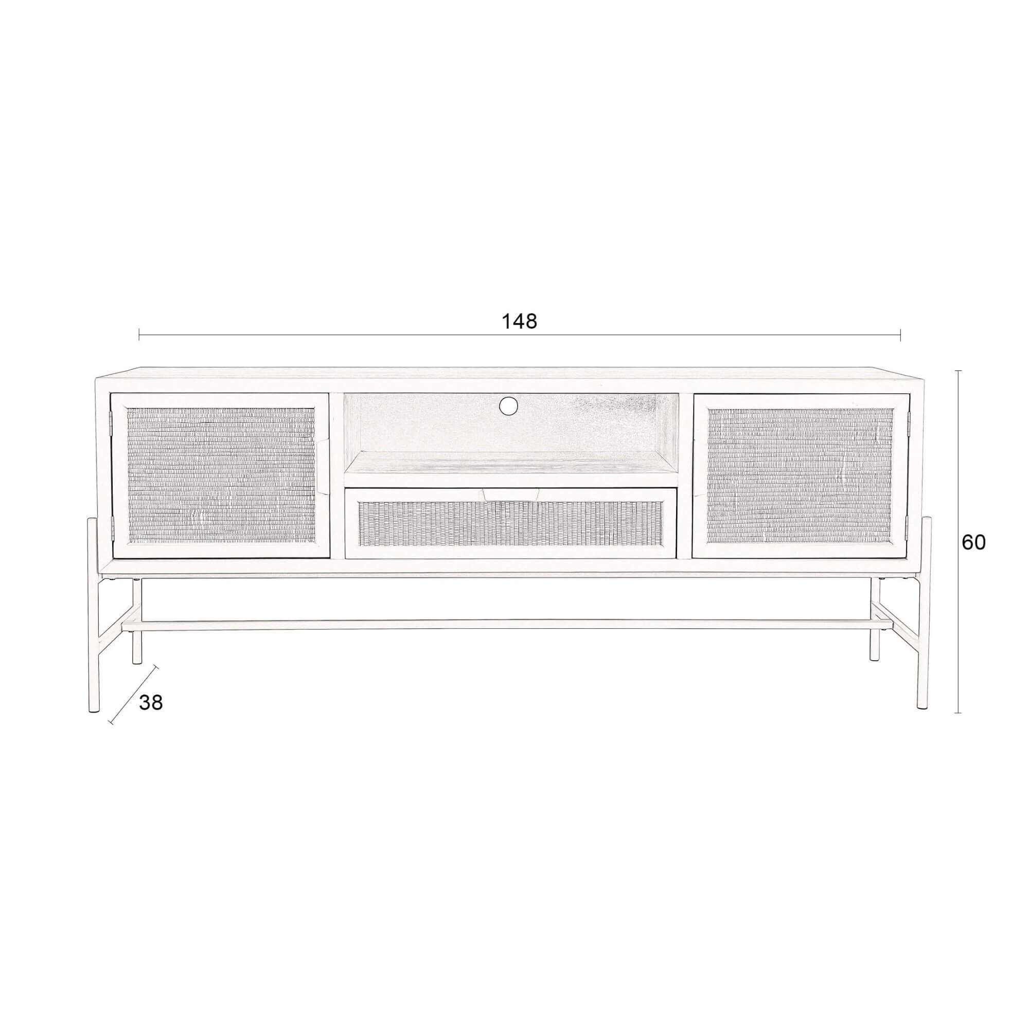 Le meuble Tv Yasu est une pièce raffinée combinant fonctionnalité et esthétique. Avec ses portes et tiroirs à effet rotin et sa finition mate, il transforme votre intérieur en un espace chaleureux et ordonné. Sa base en metal assortie complète son design harmonieux. Il incarne l’élégance et le calme, fidèle à son nom japonais signifiant « paix ».
