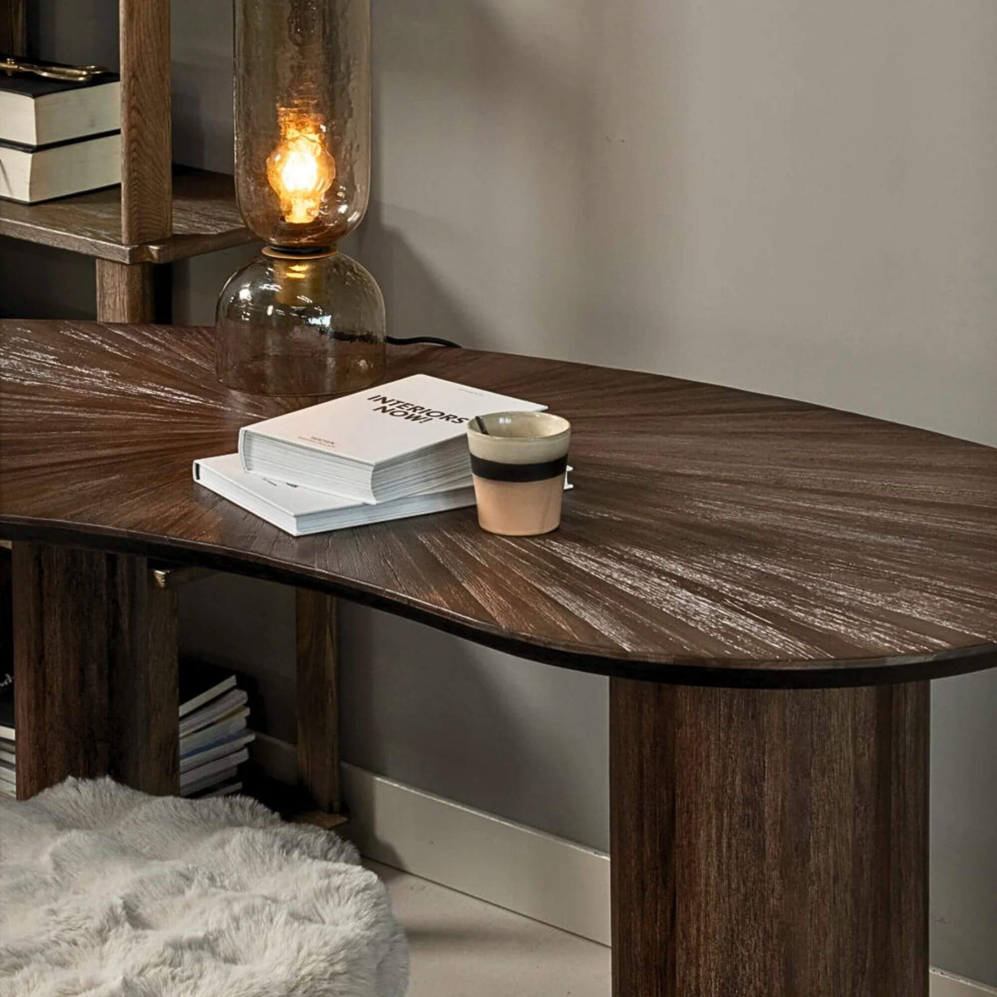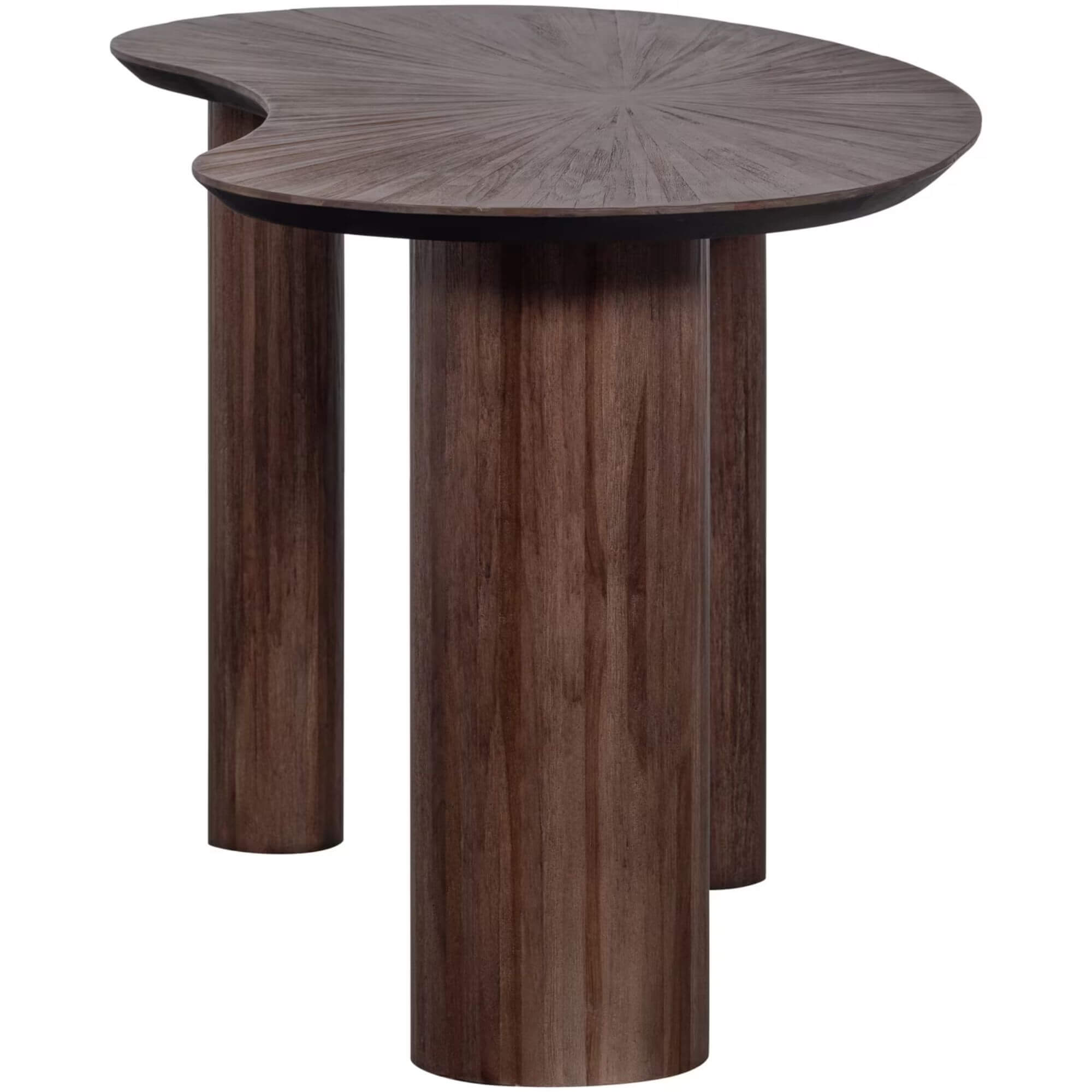 Avec sa forme organique et son look robuste, le bureau Sun apporte une touche naturelle et chaleureuse à votre espace de travail. Conçu en bois de teck, il se distingue par sa teinte brun foncé et son beau veinage apparent, qui donnent du caractère sans alourdir l’ambiance.