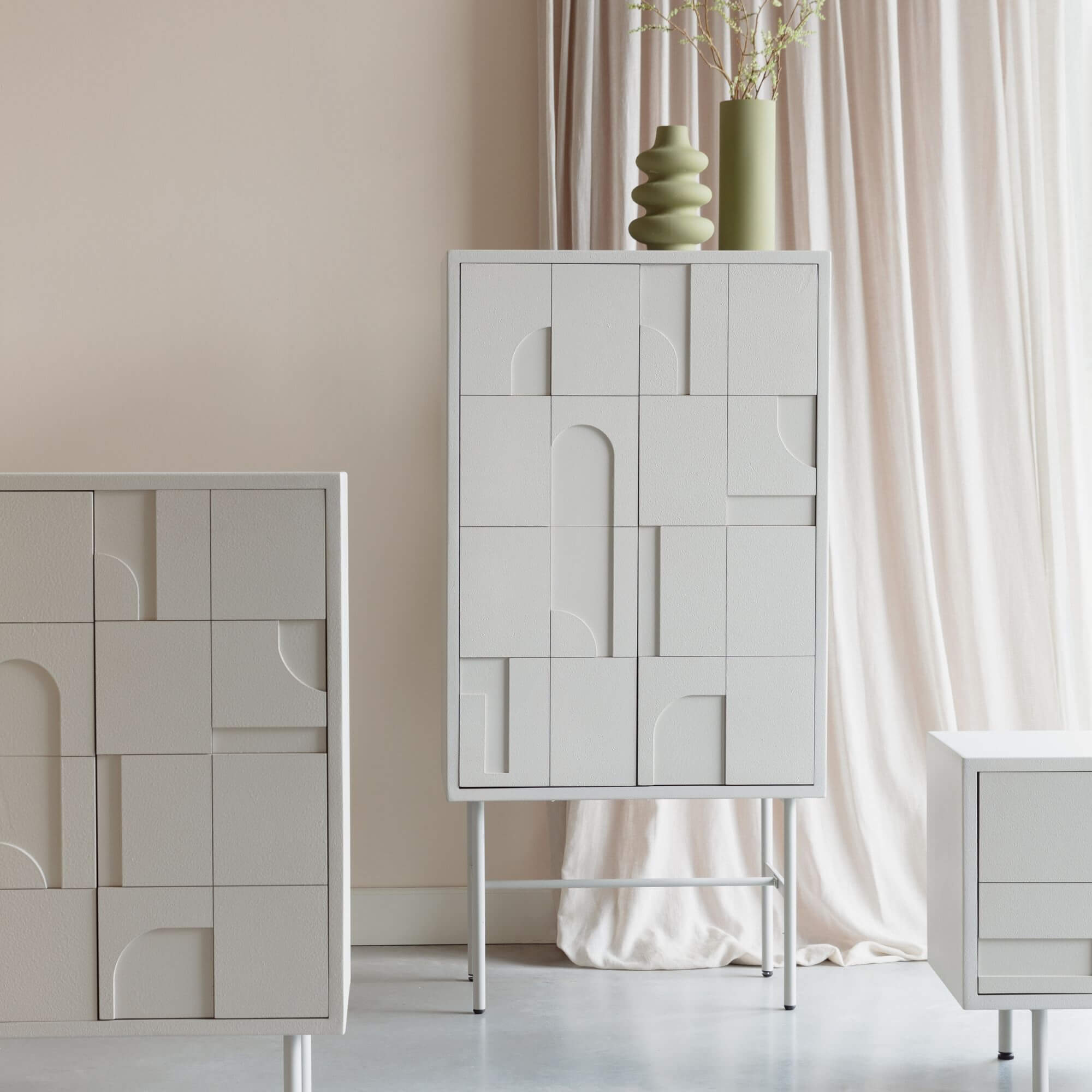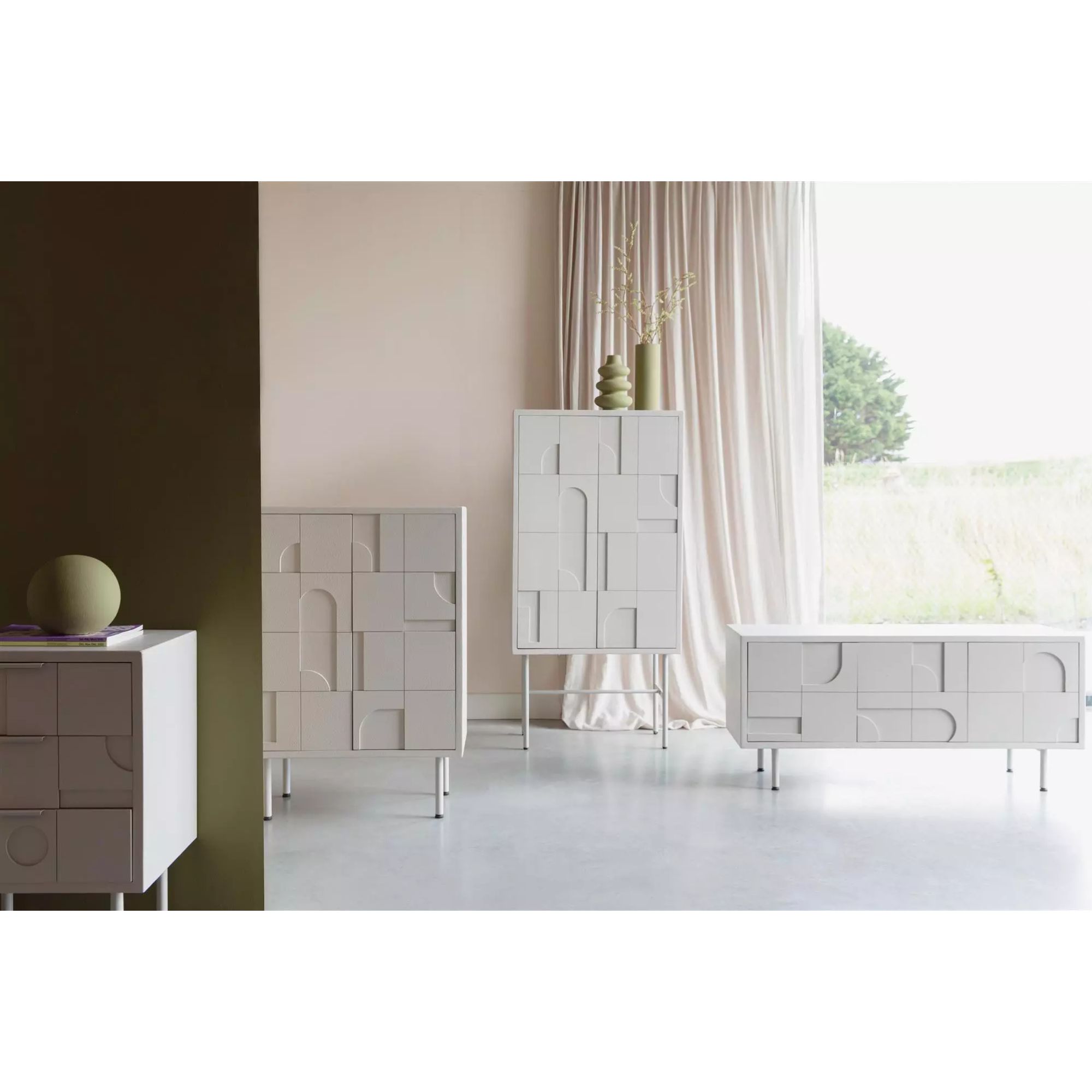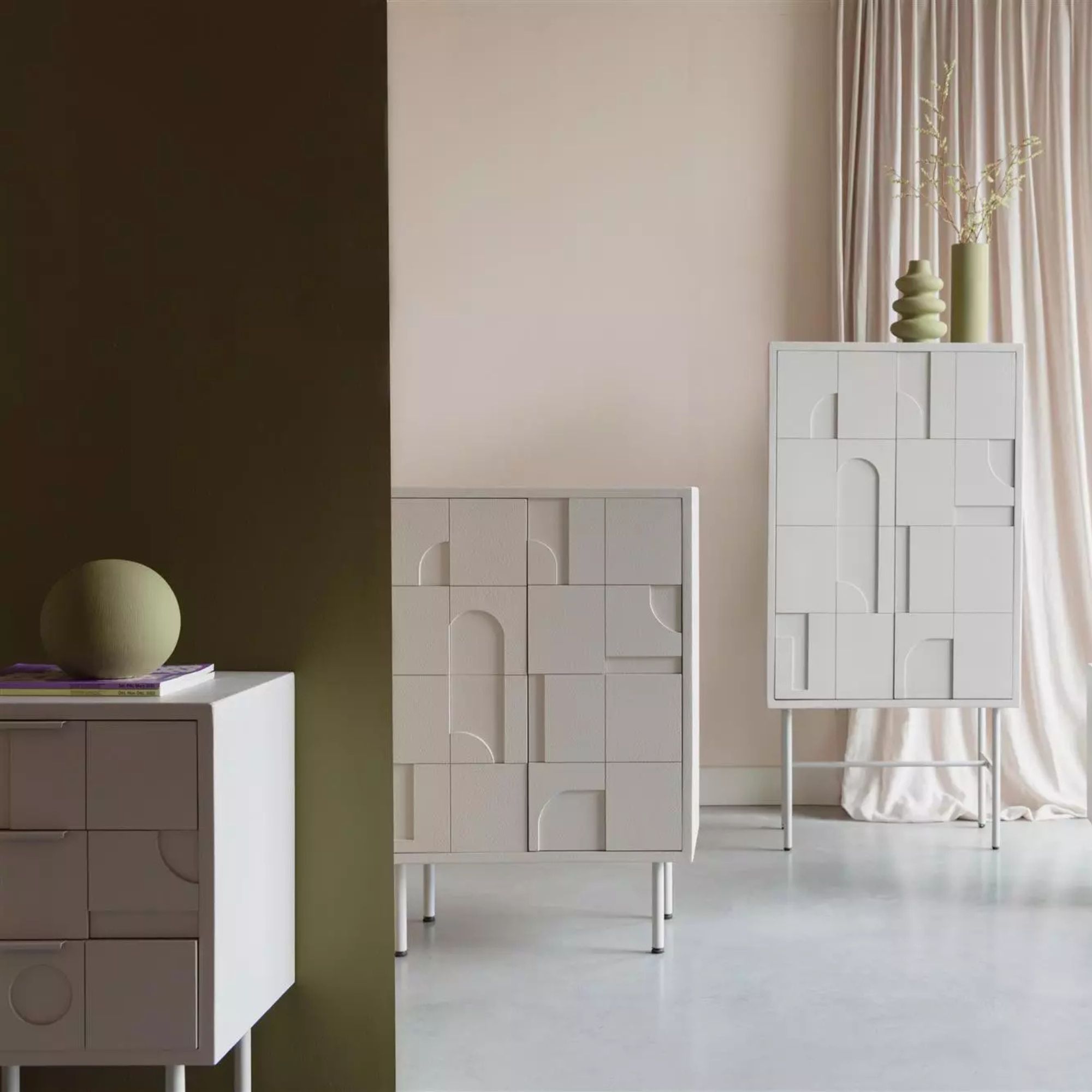 Minimaliste ! Le cabinet Funk High est un meuble design en bois, parfait pour apporter une touche contemporaine à votre intérieur. Avec sa finition beige apaisante et ses lignes épurées, il s’intègre harmonieusement dans n’importe quelle pièce. Ce meuble haut offre une solution de rangement fonctionnelle grâce à ses dimensions généreuses. Idéal pour un salon, une chambre ou un bureau. Grand coup de coeur !