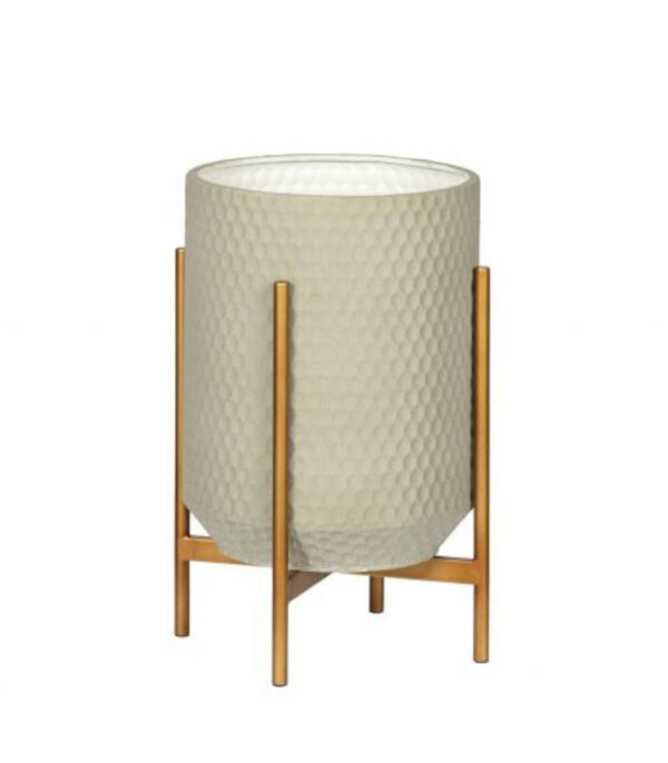 Mettez en valeur vos plus belles plantes avec ce magnifique cache-pots en béton et en métal finition laiton. On craque pour son style rétro. Vos plantes ne passeront plus inaperçues !