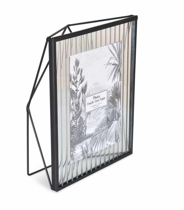 En voici un joli cadre original pour 1 photo de dimension L13 x H 18 cm. Sa structure en métal noir et son verre strié donneront une touche originale à votre décoration. (A poser ou à accrocher)