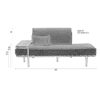 Ce canapé est conçu pour répondre à des normes élevées de qualité et de durabilité. Son sommier à lattes en PVC assure un soutien solide, avec une charge maximale de 140 kg. La hauteur d’assise de 40 cm et la profondeur d’assise de 59,5 cm offrent un confort optimal.