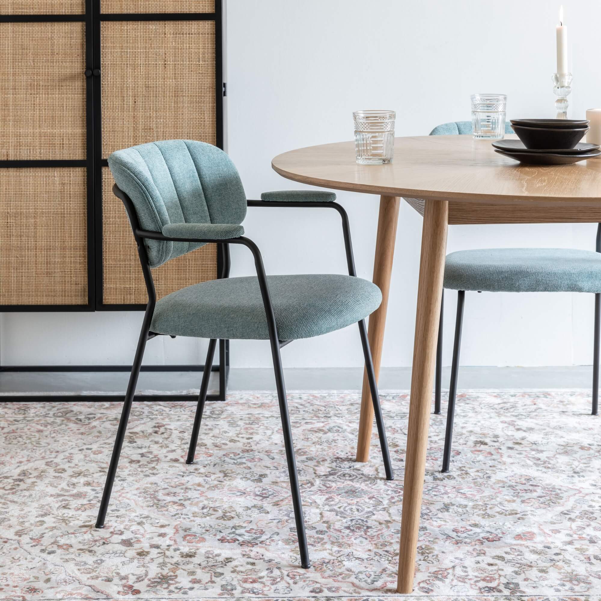 Chaise/accoudoirs Jolien – Vert eau | Pieds Noirs