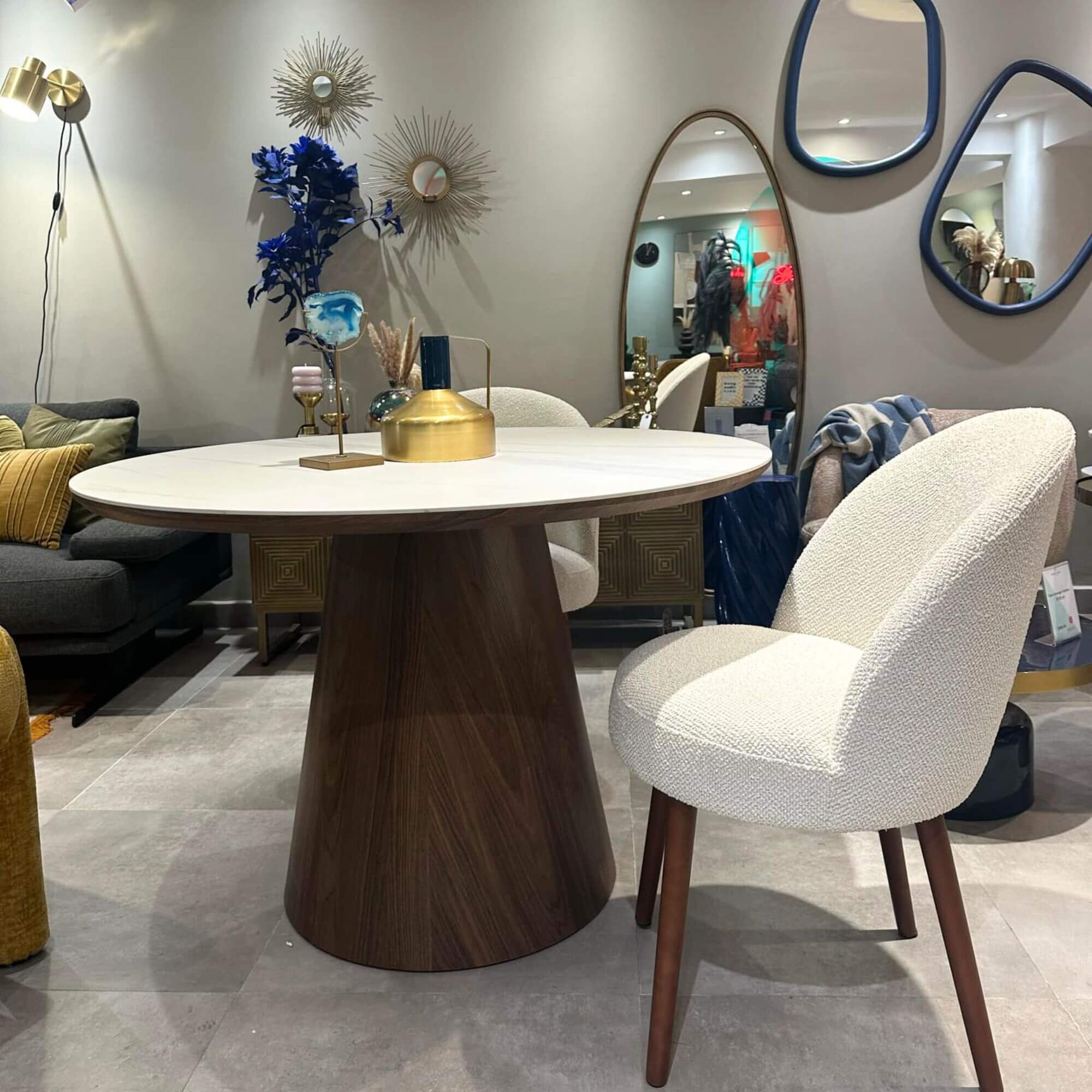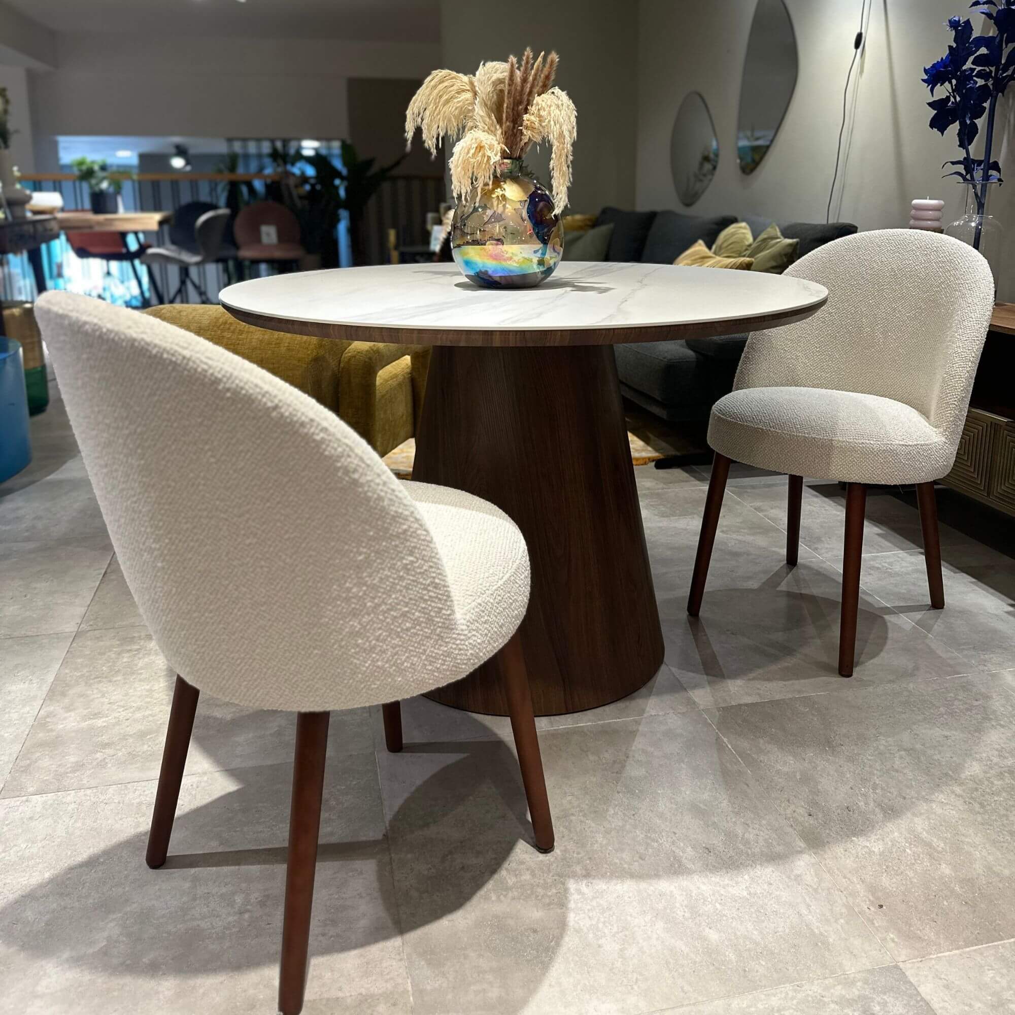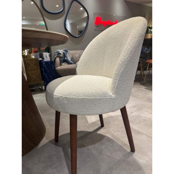 La chaise Barbara allie un confort exceptionnel à un design raffiné. Son revêtement en bouclette anti-tâche et ses pieds en bois finition noyer en font une pièce élégante pour votre salle à manger ou bureau. Avec une assise large de 51 cm et une profondeur de 44 cm, elle est parfaite pour les longs repas ou les moments de détente. Capable de supporter jusqu’à 120 kg, cette chaise est robuste tout en restant chic. Elle s’adapte à tous les intérieurs, qu’ils soient modernes ou vintage. Ajoutez un coin repas cosy et chaleureux à votre maison avec cette chaise confortable et élégante.