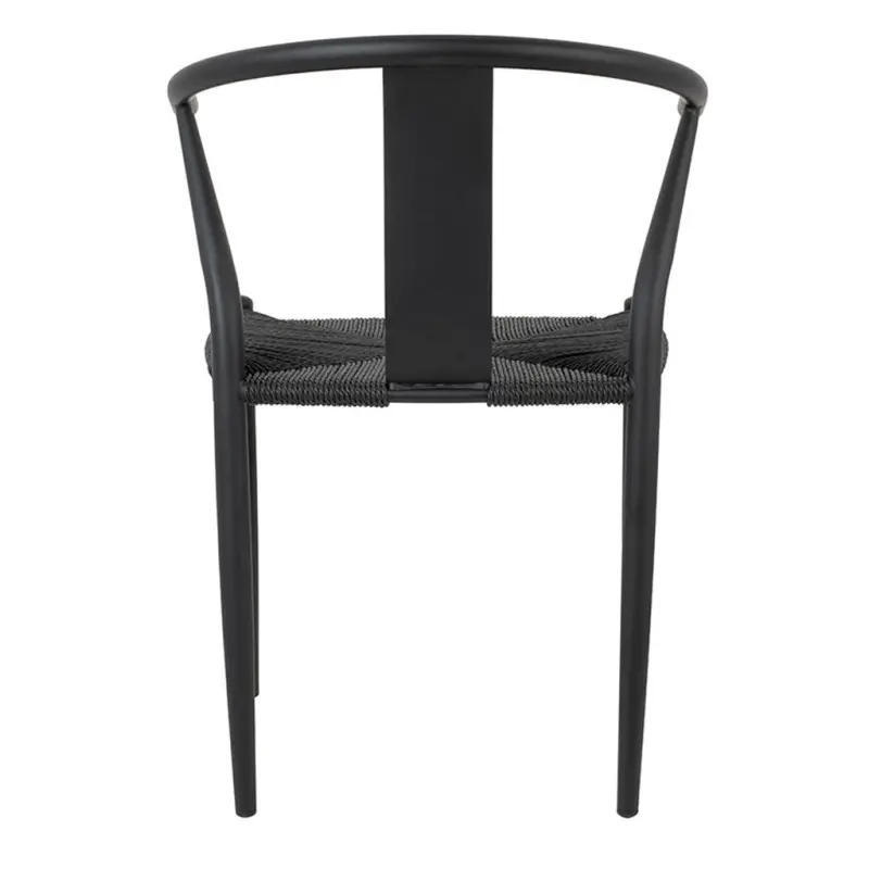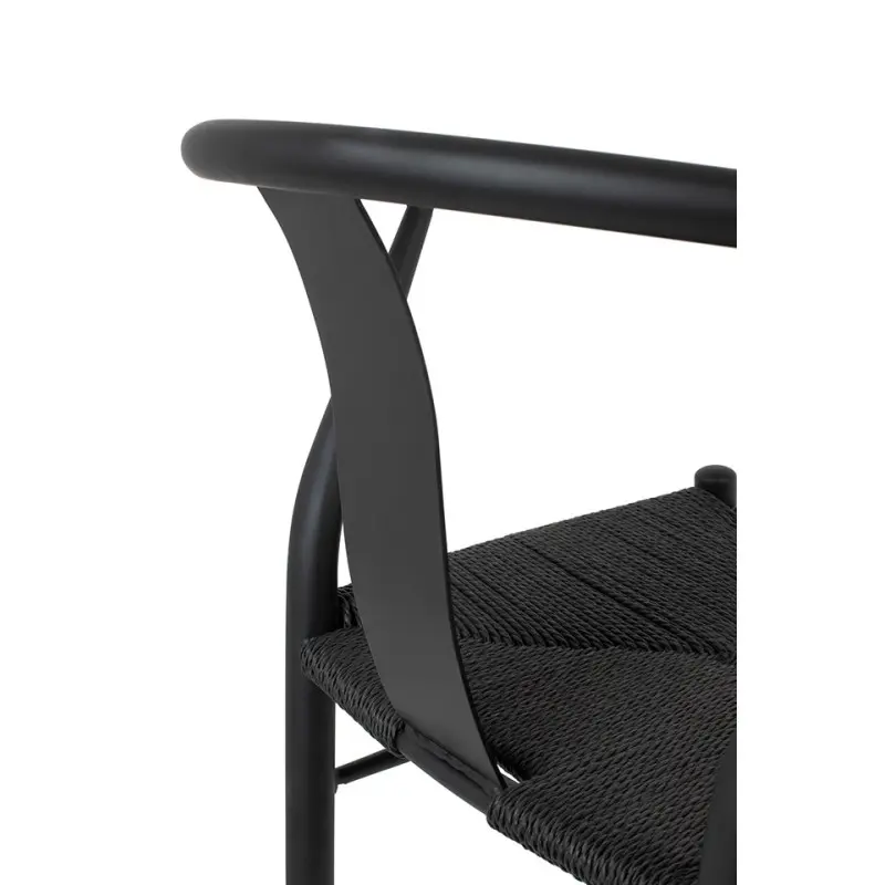 Matériaux de Qualité : Fabriquée avec soin, cette chaise présente une structure en métal noir robuste et un élégant tressage en rotin noir.