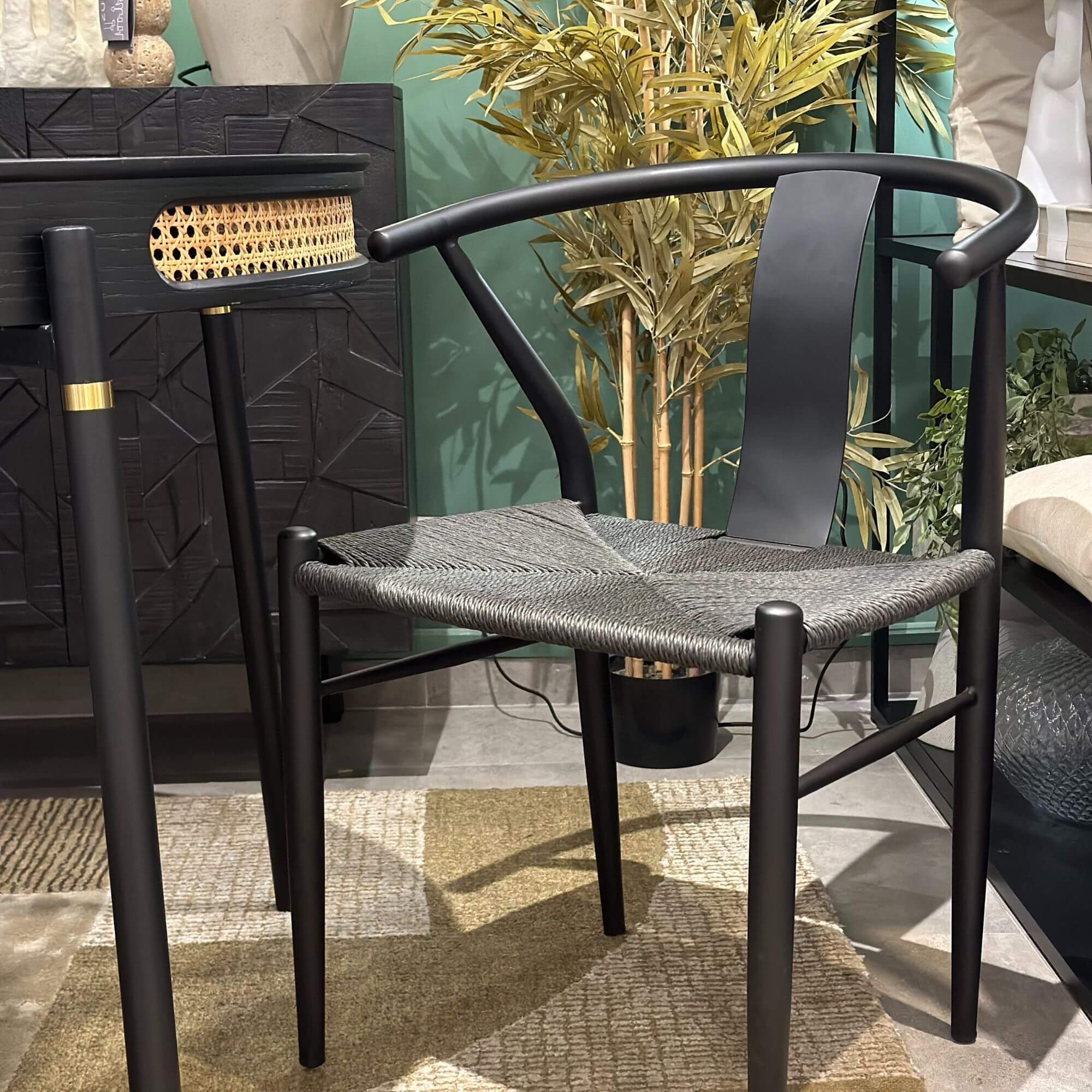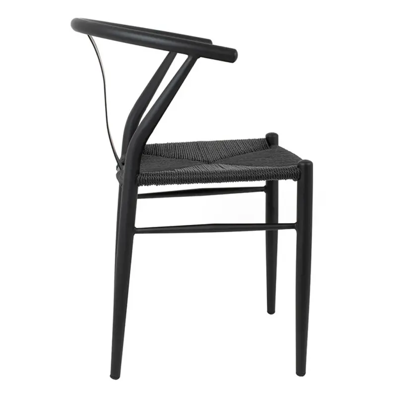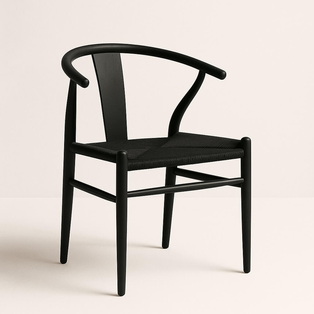 La chaise Hans en métal et rotin noir est une incarnation moderne de l’élégance intemporelle. Inspirée par la célèbre Wishbone Chair de Hans Wegner, cette pièce est une fusion parfaite entre artisanat exceptionnel et design contemporain.