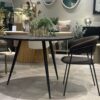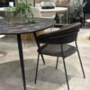 La base unique en métal noir assure la stabilité et confère à Jojo une esthétique moderne et raffinée. Son confort d’assise robuste en fait un choix idéal pour de longs repas en famille ou entre amis.