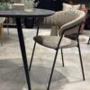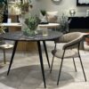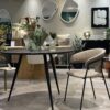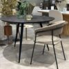 La base unique en métal noir assure la stabilité et confère à Jojo une esthétique moderne et raffinée. Son confort d’assise robuste en fait un choix idéal pour de longs repas en famille ou entre amis.