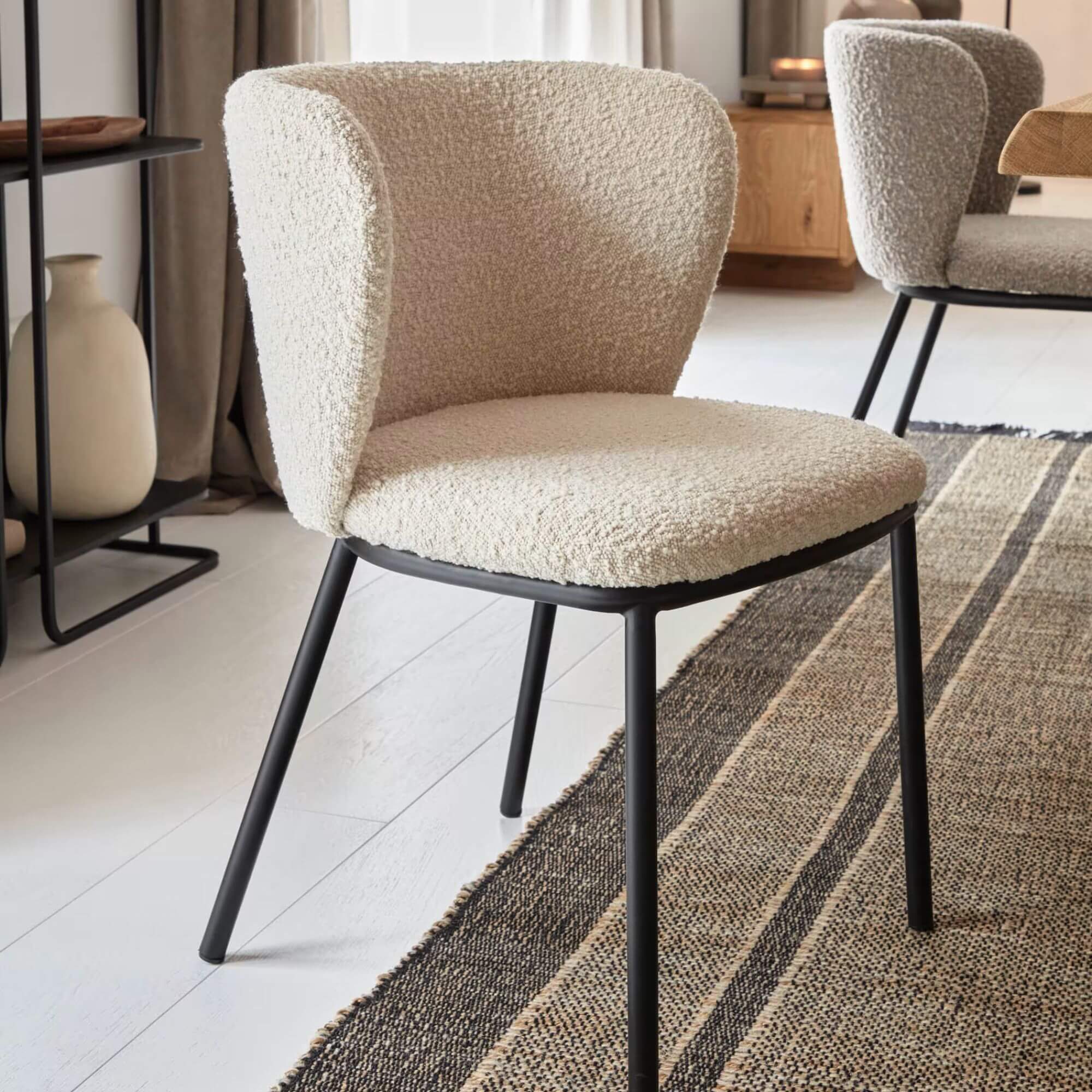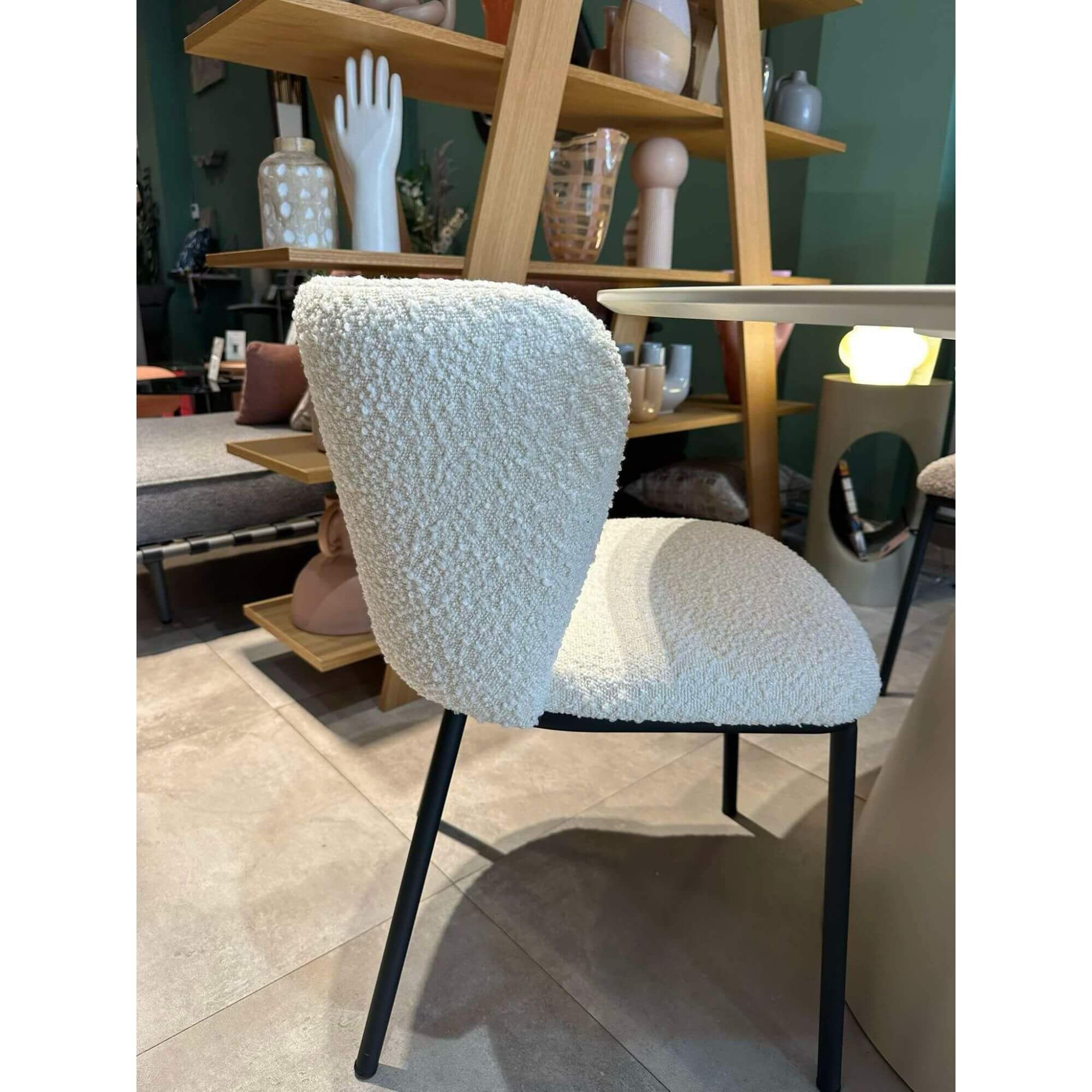 Avec son assise généreusement rembourrée en tissu bouclette, cette chaise anti-tâche allie parfaitement style contemporain et confort enveloppant. Habillée d’un tissu bouclette au toucher moelleux, cette chaise combine confort et élégance. Son design tout en courbes crée une silhouette accueillante, parfaite autour d’une table ou en assise d’appoint. Une pièce pleine de charme qui invite à ralentir et à savourer l’instant.