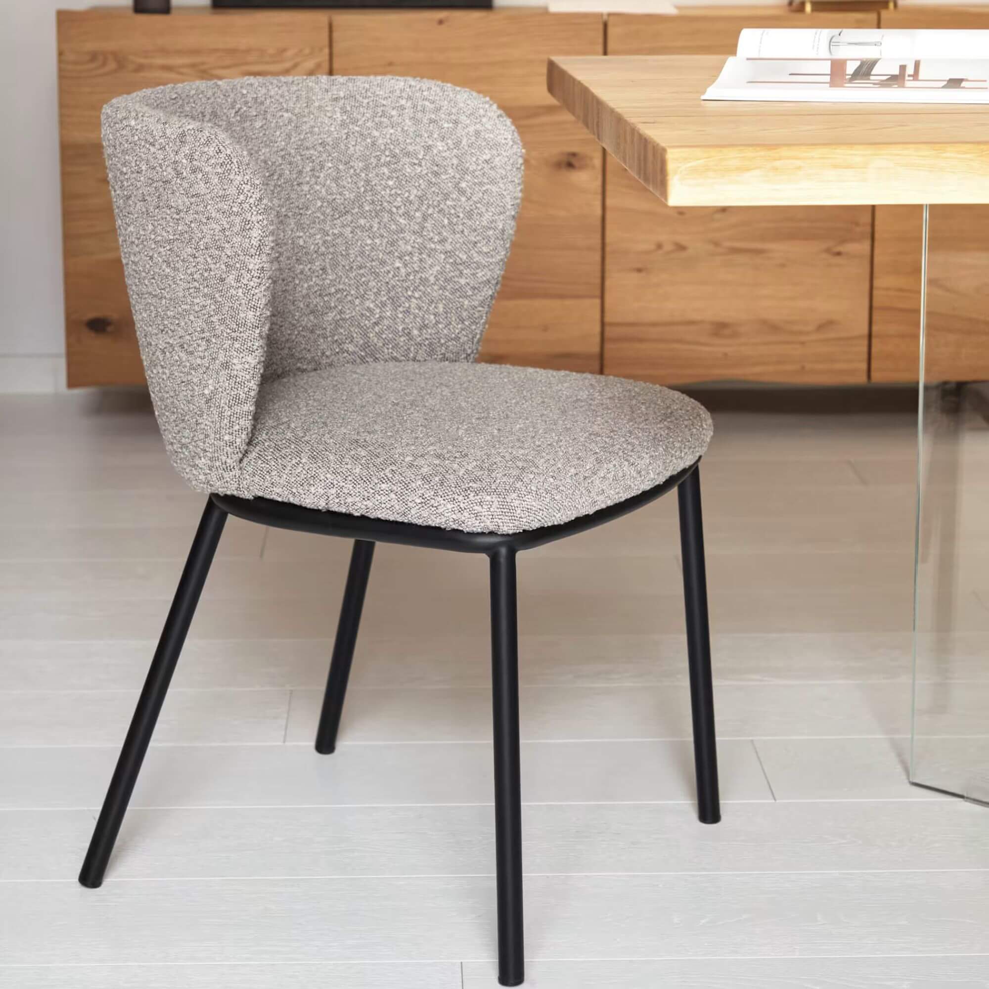 Avec son assise généreusement rembourrée en tissu bouclette, cette chaise anti-tâche allie parfaitement style contemporain et confort enveloppant. Habillée d’un tissu bouclette au toucher moelleux, cette chaise combine confort et élégance. Son design tout en courbes crée une silhouette accueillante, parfaite autour d’une table ou en assise d’appoint. Une pièce pleine de charme qui invite à ralentir et à savourer l’instant.