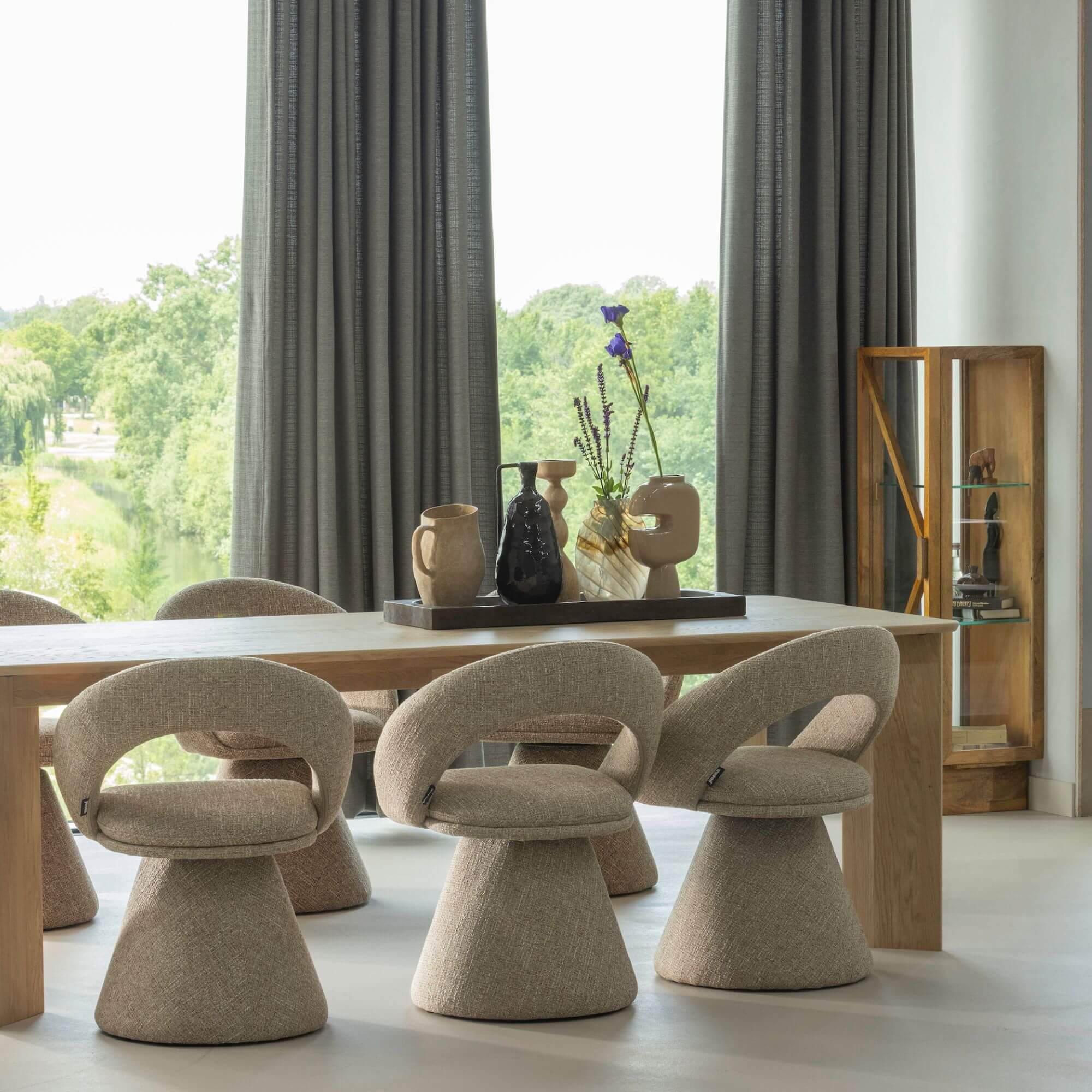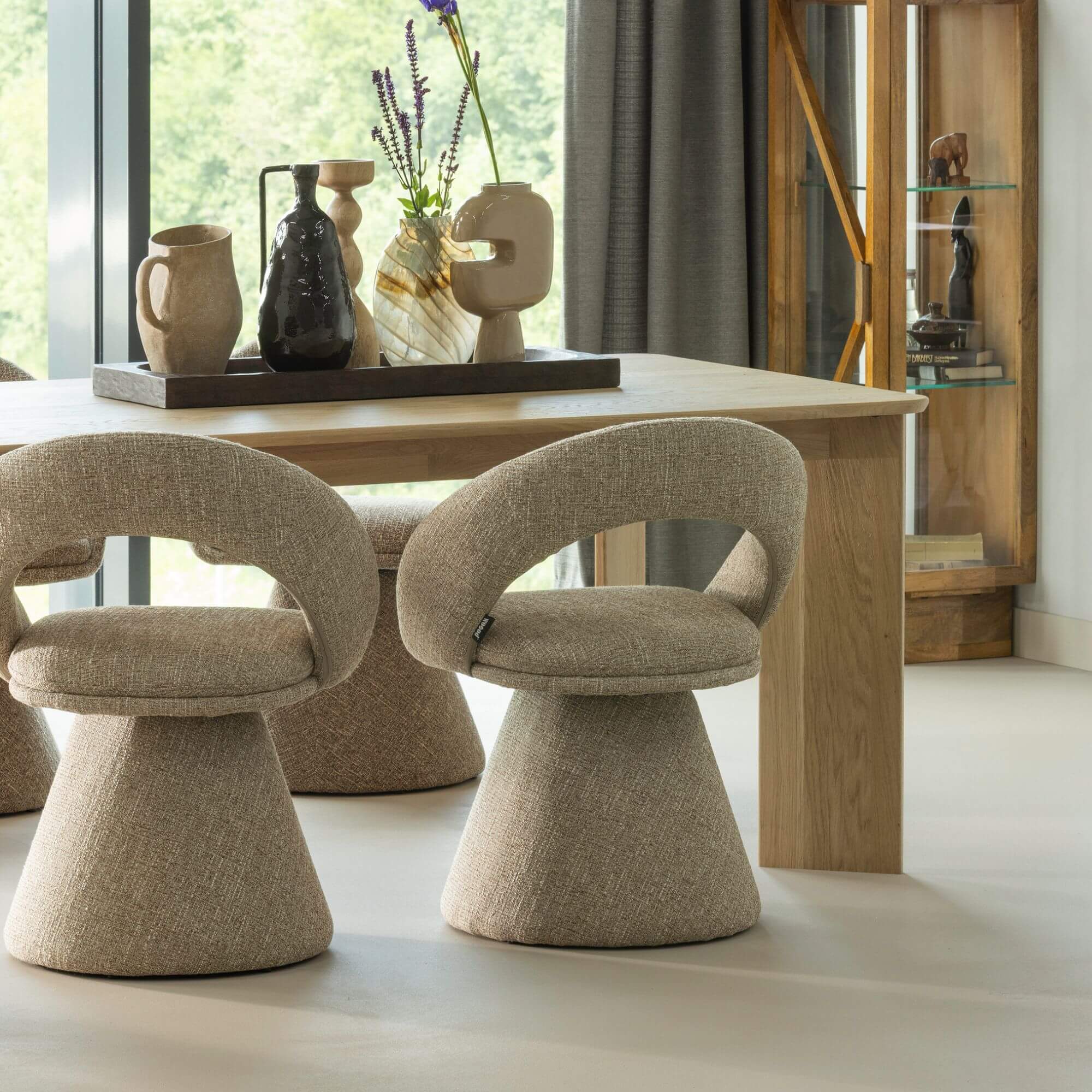 La chaise pivotante Winter allie confort et design contemporain avec son revêtement en tissu texturé naturel et sa base pivotante intégrée. Une assise élégante et fonctionnelle idéale pour une salle à manger moderne.
