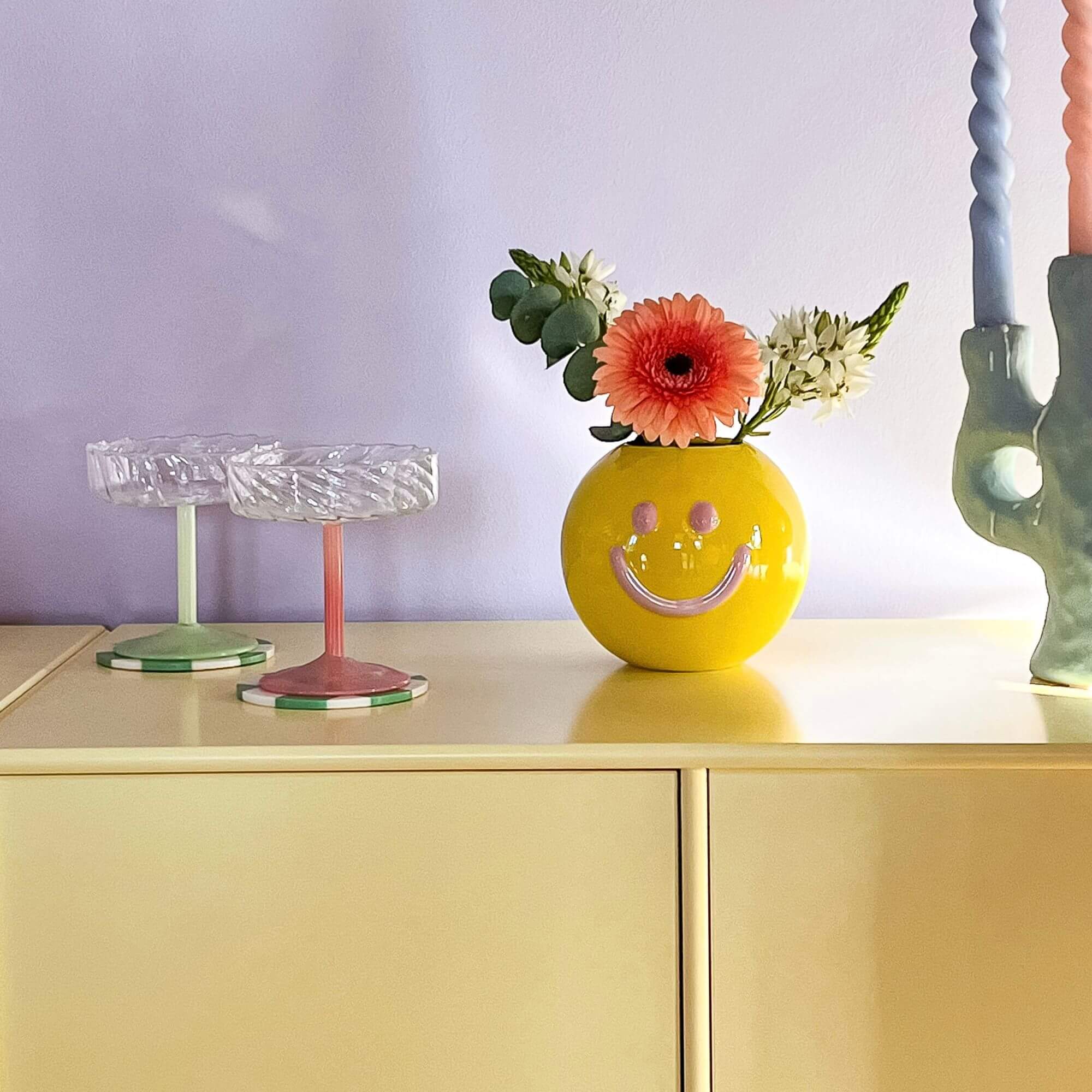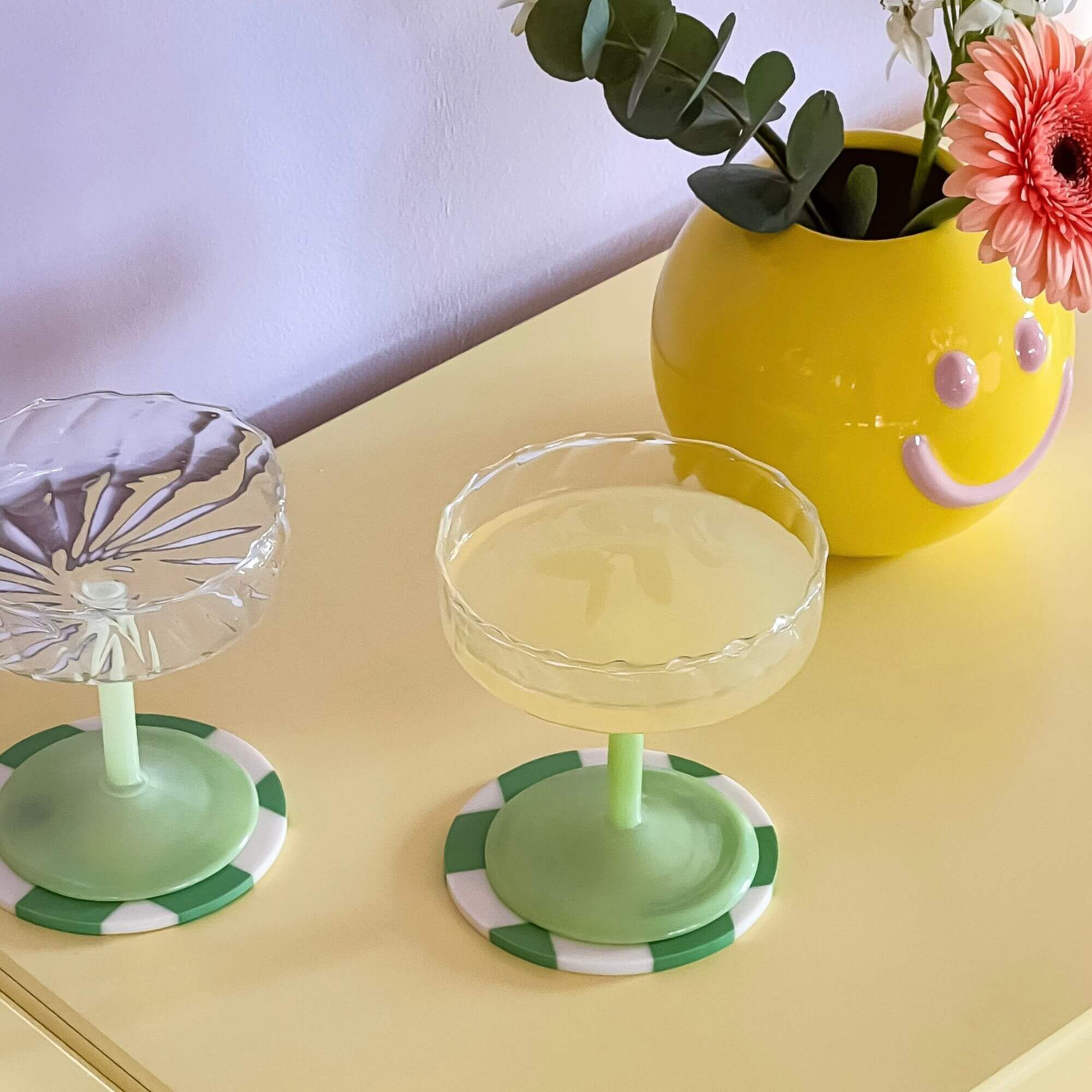 Romantique chic ! Ces coupes à champagne rétro sont à la fois romantiques et élégantes, offrant une invitation à la douceur et à la délicatesse. Le pied est subtilement habillé de teintes pastel qui ajoutent une touche de chic. La coupe en verre transparent est ornée de motifs virevoltants inspirés des verres en cristal ciselé d’antan.