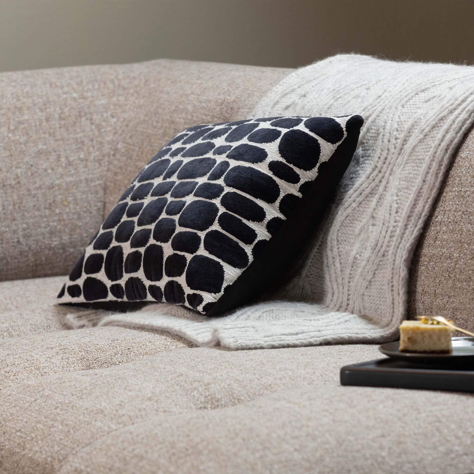 La teinture des fibres ou des fils de coton est réalisée avec beaucoup de soin et nécessite donc une manipulation soigneuse. C’est pourquoi il convient d’éviter les frottements brutaux et la lumière directe du soleil. Associez-le à d’autres éléments de la série Abstract Aztec pour une décoration cohérente et pleine de style.