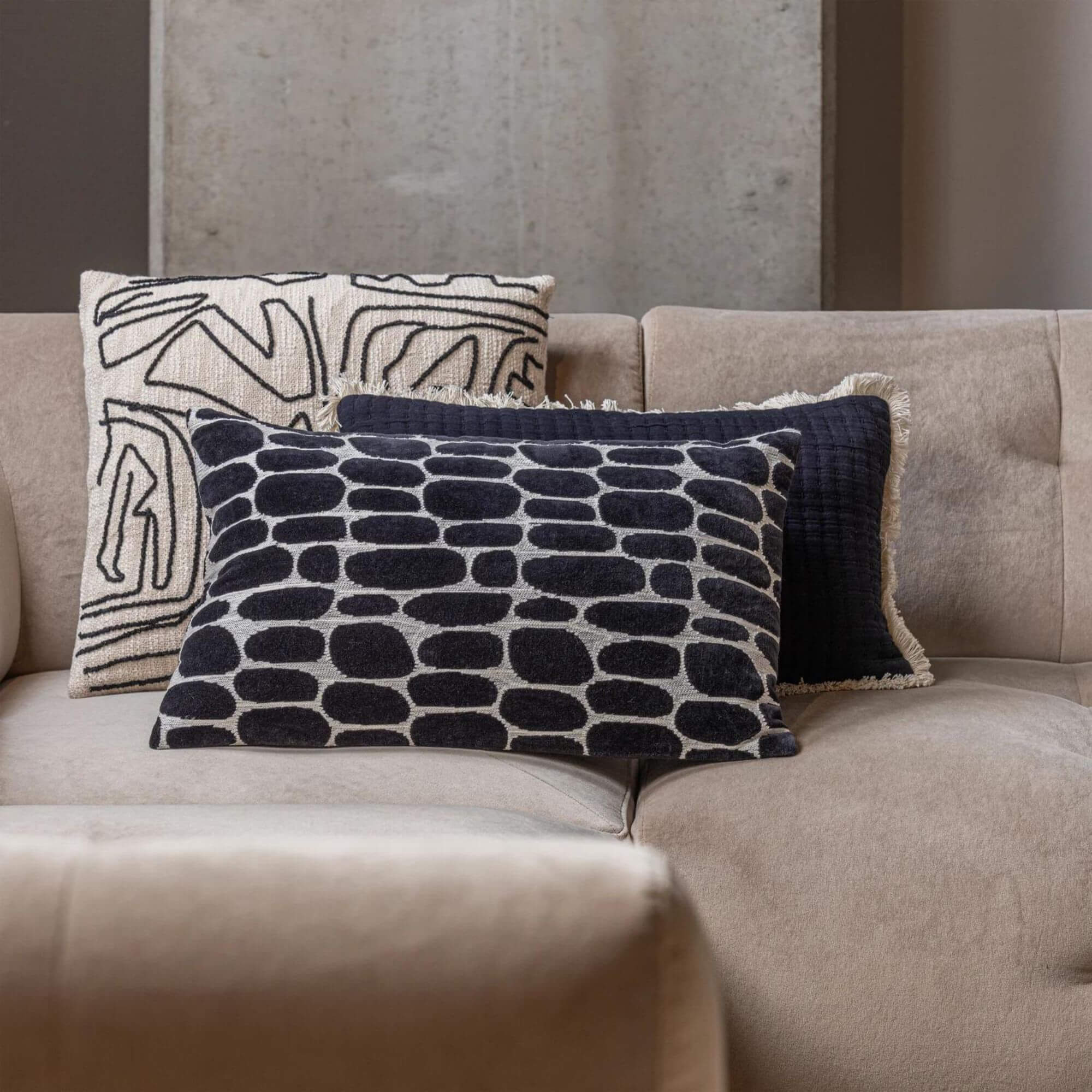 Ajoutez une touche d’élégance artistique à votre intérieur avec ce joli coussin Anwar. Faisant partie de la série Abstract Aztec, il allie style et confort. Il est idéal pour ajouter une touche artistique à votre canapé, votre fauteuil ou votre lit. La housse de coussin est fabriquée en 100 % coton. Les housses de coussin en coton de nos collections sont d’une qualité visiblement élevée. Les fibres végétales sont tissées en un tissu souple qui épouse parfaitement la forme du rembourrage du coussin. La fibre de coton naturelle est intrinsèquement très solide et résistante.