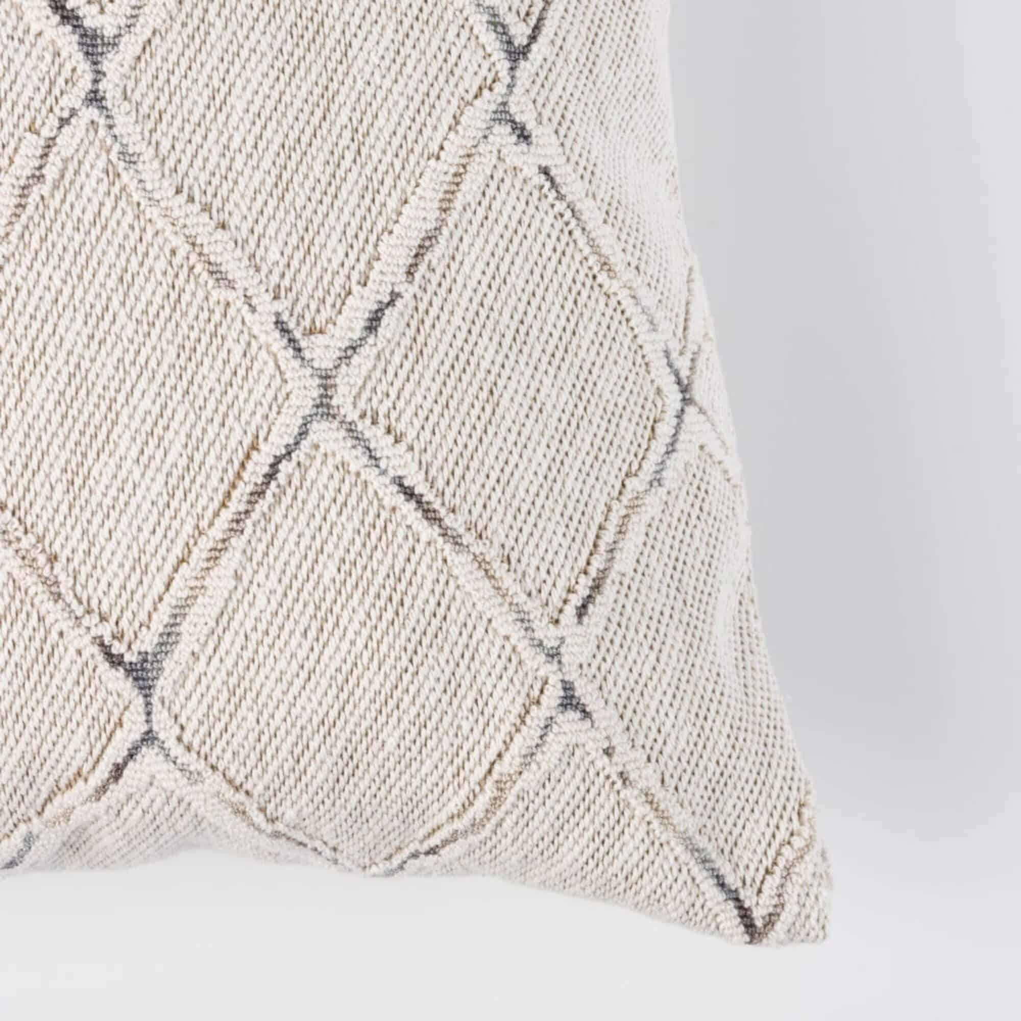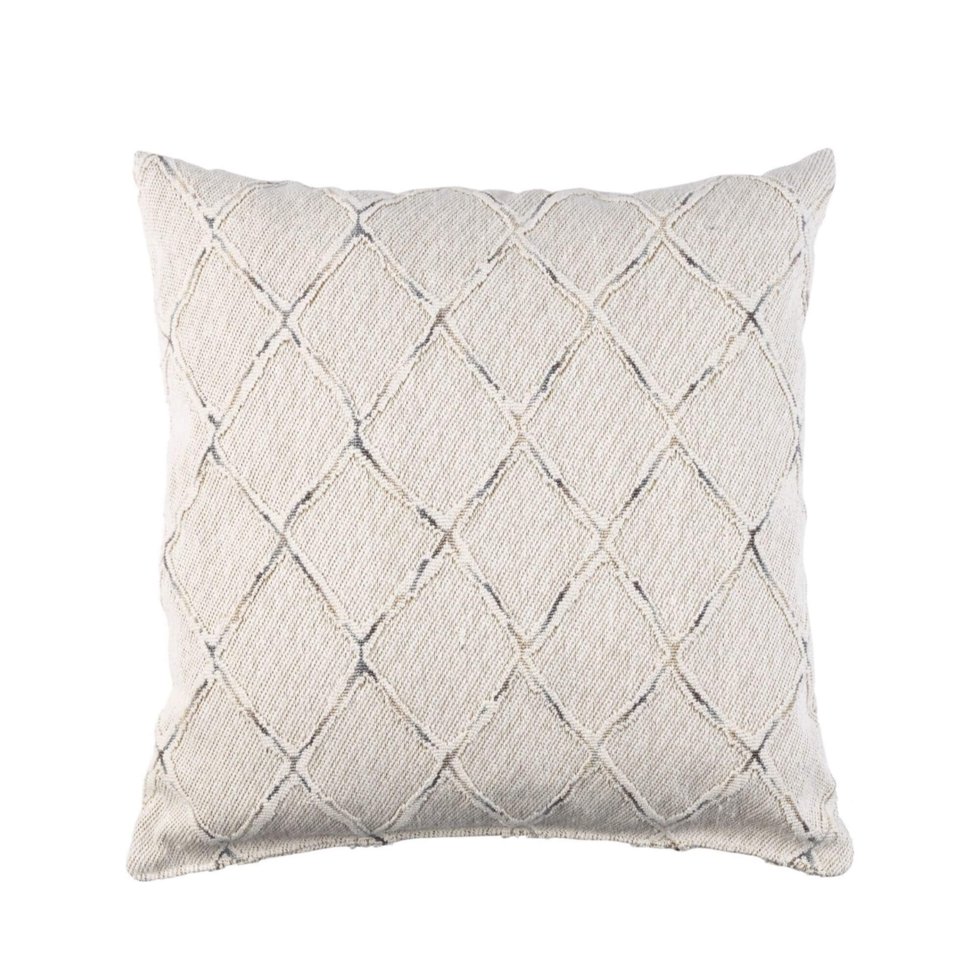 Revêtu d’un tissu bouclé à la texture douce et réconfortante, ce coussin décoratif carré affiche un motif en losanges aux teintes beige, lui conférant un aspect à la fois branché et ludique..