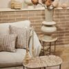 Ce coussin au charme rétro s’installera avec élégance sur votre canapé ou fauteuil, se transformant en accoudoir pratique ou en repose-tête.