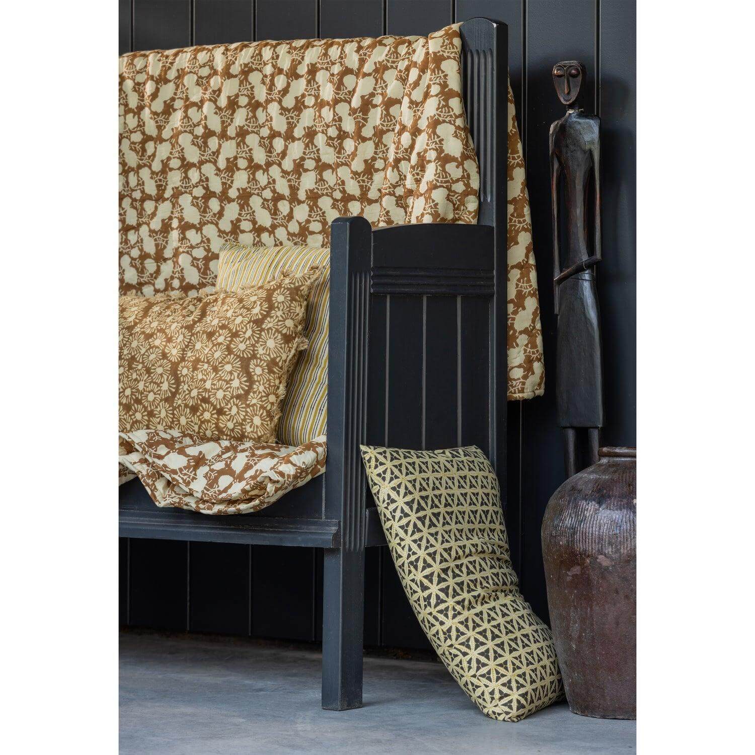 Apportez une touche graphique et chaleureuse à votre intérieur avec le coussin Trigon. Ses motifs noirs et moutarde, inspirés de formes géométriques, s’intègrent parfaitement à une décoration moderne ou rétro. Conçu dans un format rectangulaire de 40×60 cm, il offre à la fois confort et élégance pour votre canapé, fauteuil ou lit.
