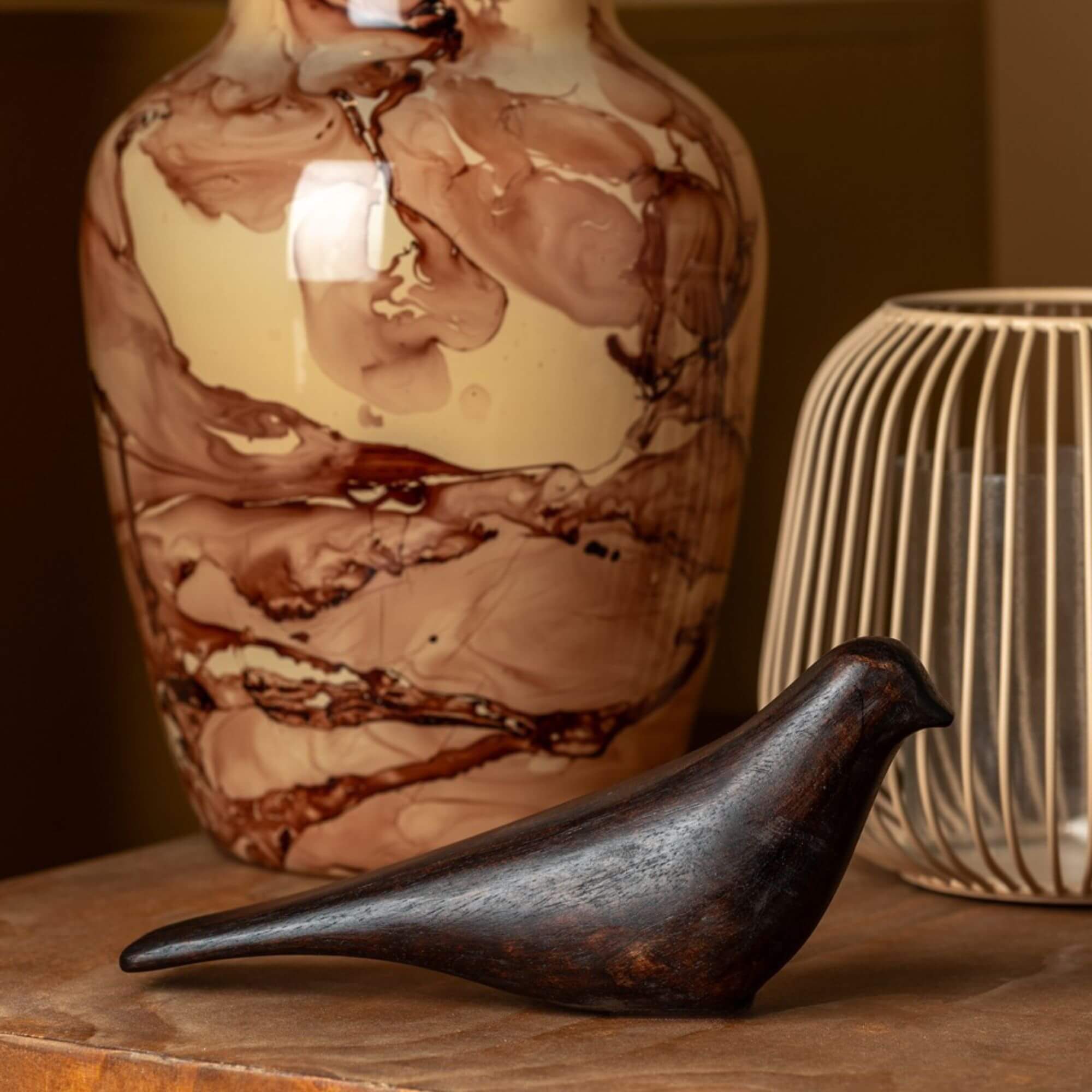 Placée sur une étagère, une commode ou une bibliothèque, seule ou en groupe, cette sculpture en bois de manguier apportera à votre déco une touche poétique, chic et informelle.