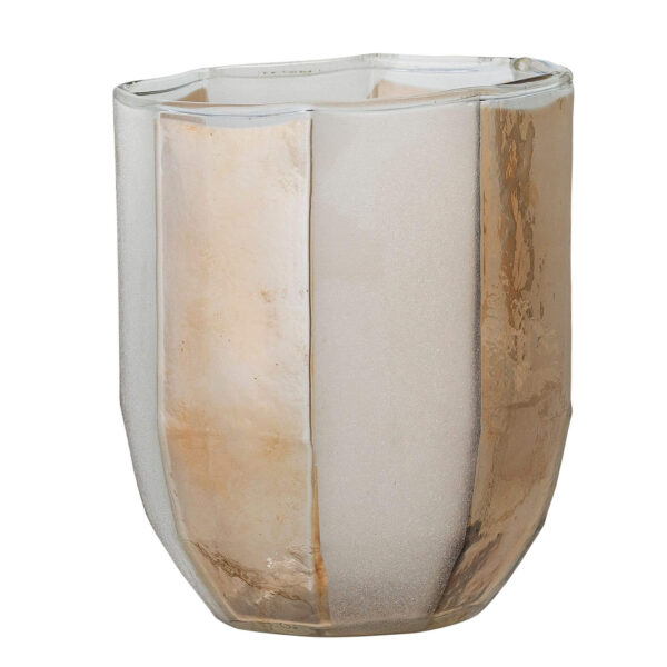 Un photophore ou vase ? le choix est à vous ! Cette jolie déco présente une belle combinaison de verre blanc mat et doré. C’est le votif idéal pour donner une lumière chaleureuse et créer une atmosphère calme et détendue dans votre intérieur.