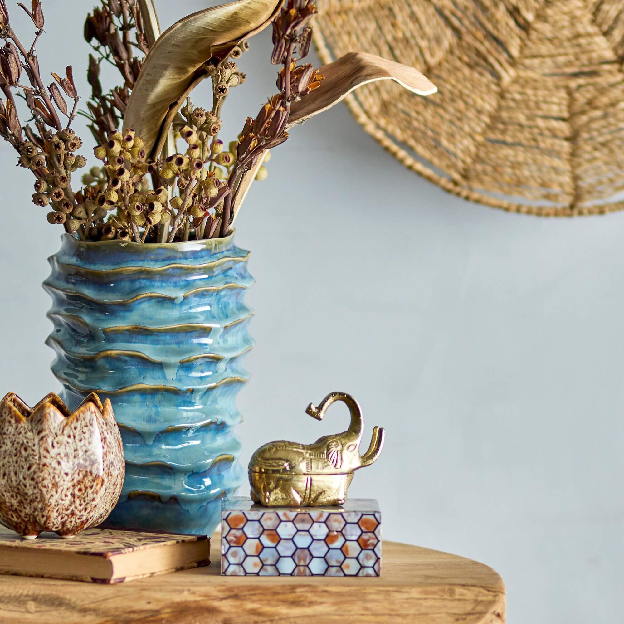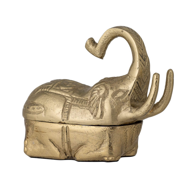 Coup de coeur ! La Déco Vinna est une petite boîte en forme d’éléphant en aluminium au fini antique. Sa teinte dorée s’adapte parfaitement à tout style de décoration ou peut servir à ranger vos bijoux préférés.