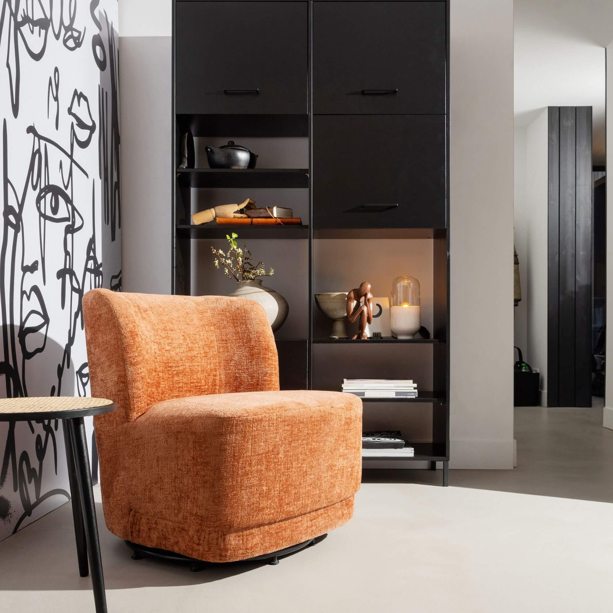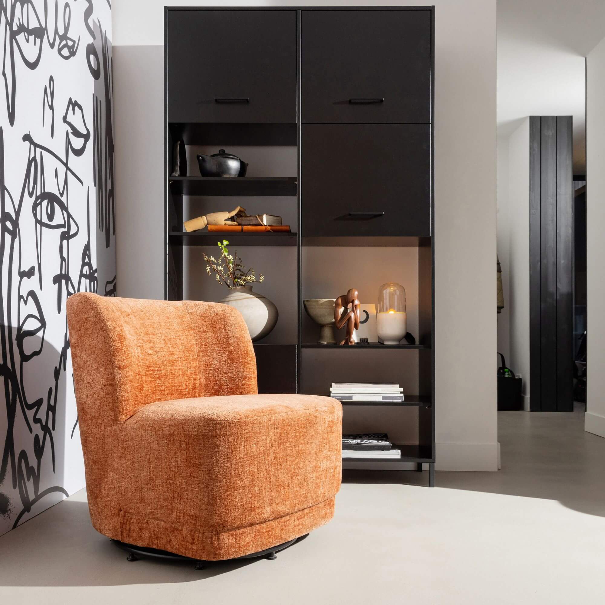Le fauteuil lounge Atty séduit par son design robuste et ses formes douces, parfaites pour apporter une touche chaleureuse à votre intérieur. Recouvert d’un luxueux velours, il allie esthétisme et praticité avec sa base pivotante. Confortable et résistant, Atty s’adapte à un usage quotidien, idéal pour sublimer votre salon.