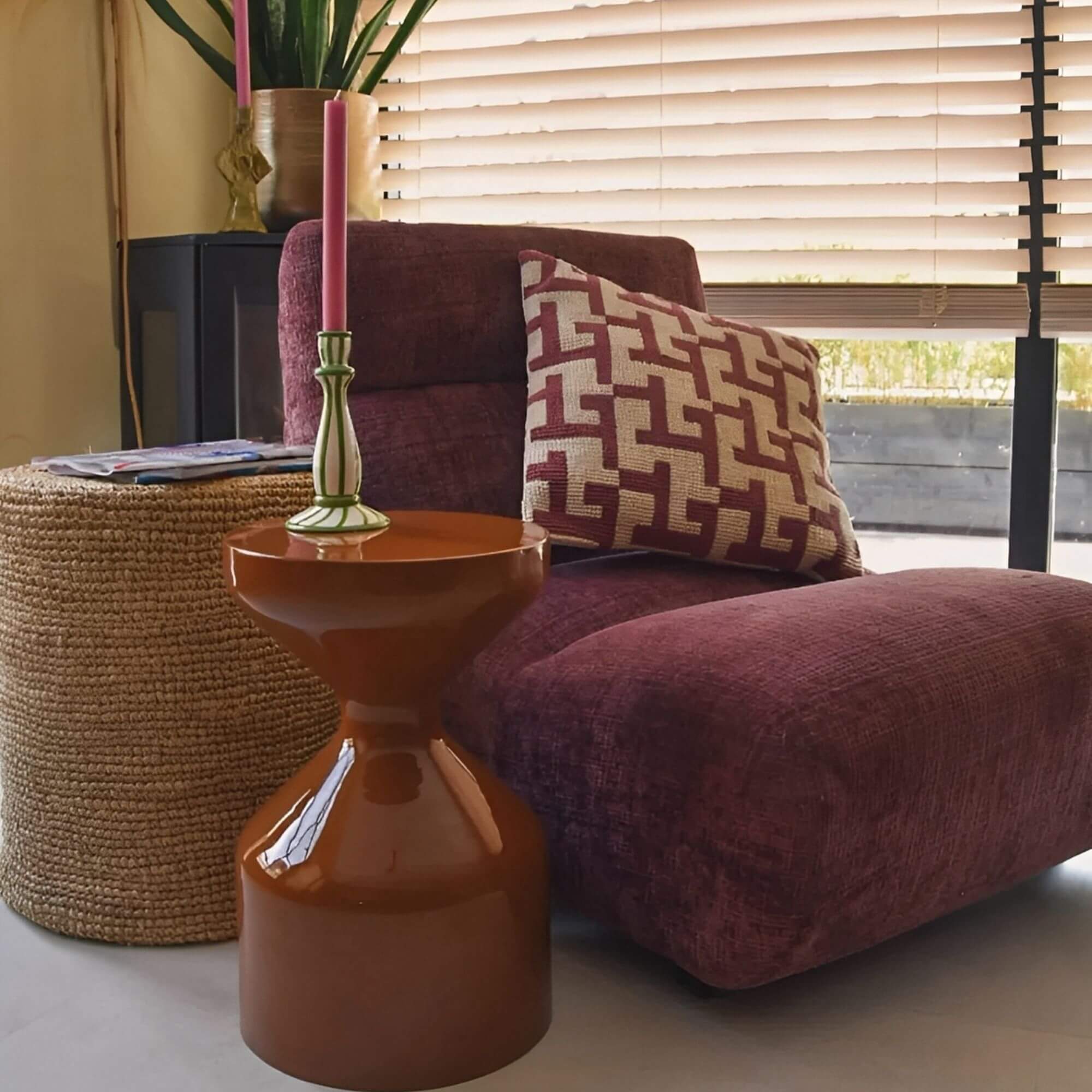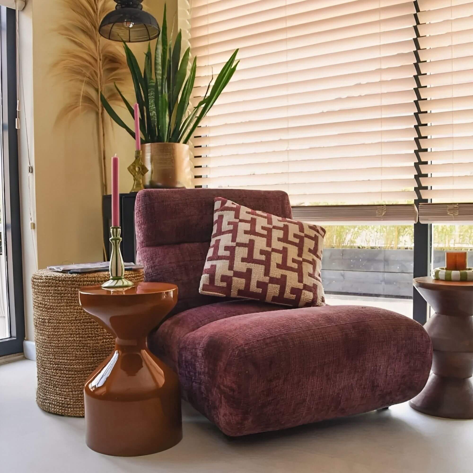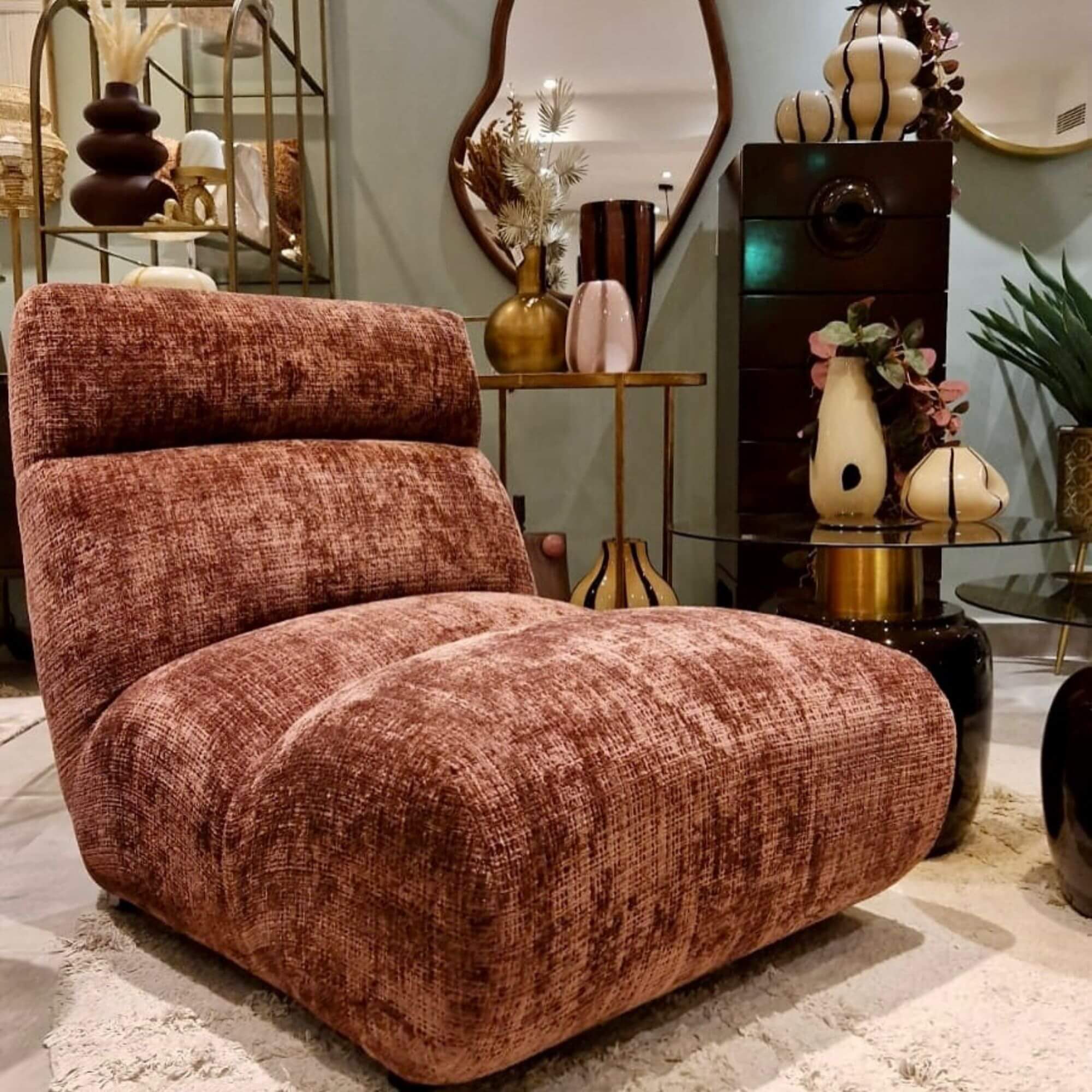 Ce trône ultra cosy se distingue par son tissu chenille épais au tissage irrégulier et son look molletonné, de la tête aux pieds. Un vrai cocon textile au style bien trempé.