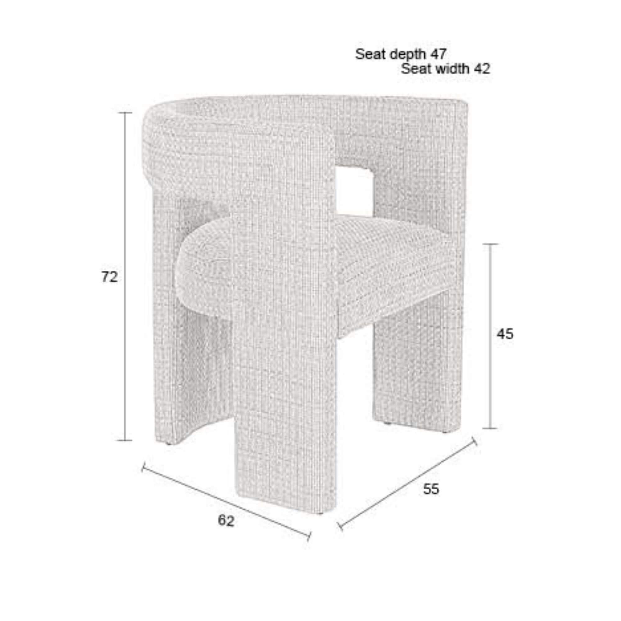 Dim.: L 55 x P 62 x H 72 cm | Hauteur d’assise : 45 cm | Profondeur assise : 47 cm