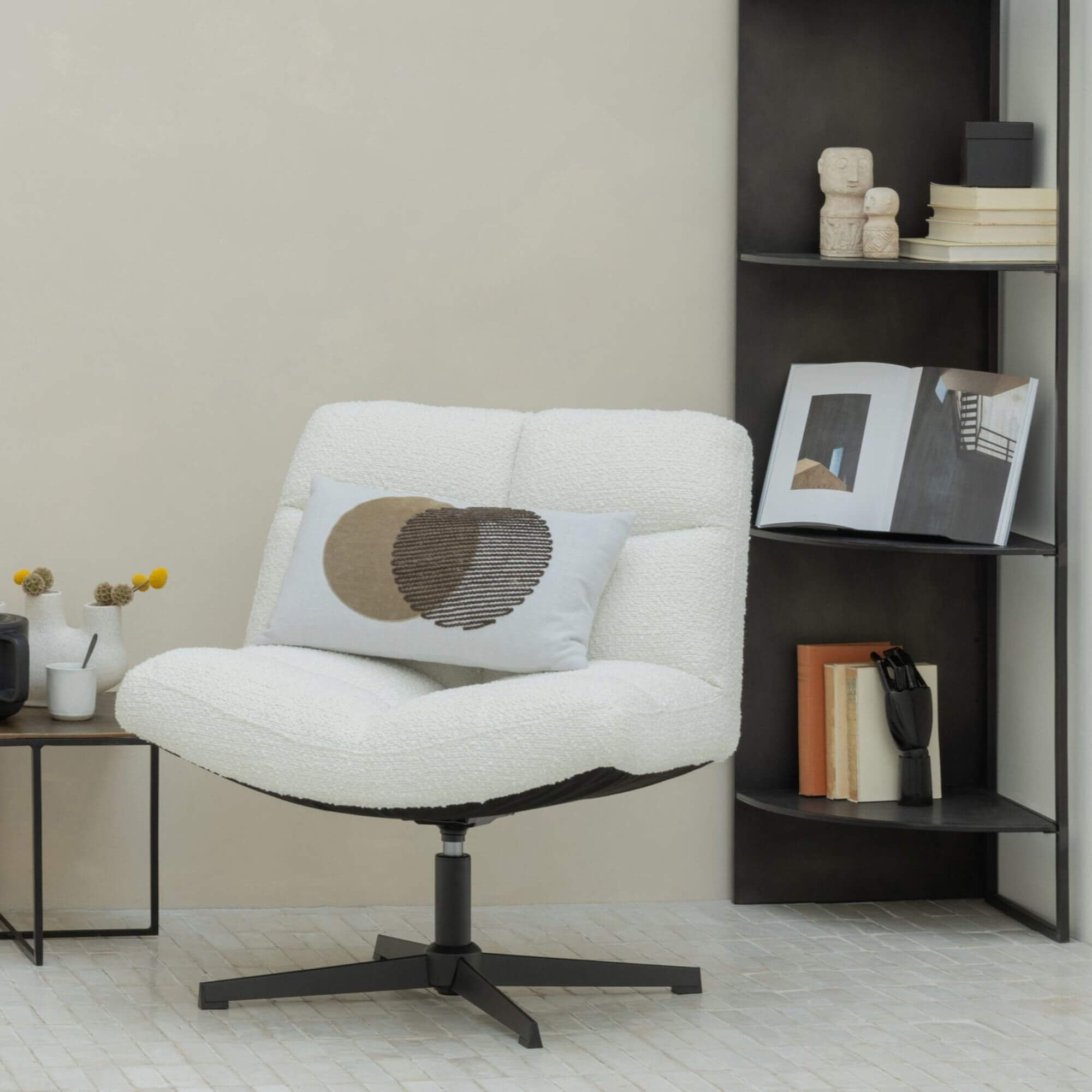 Fauteuil pivotant Vinny – Bouclette blanche