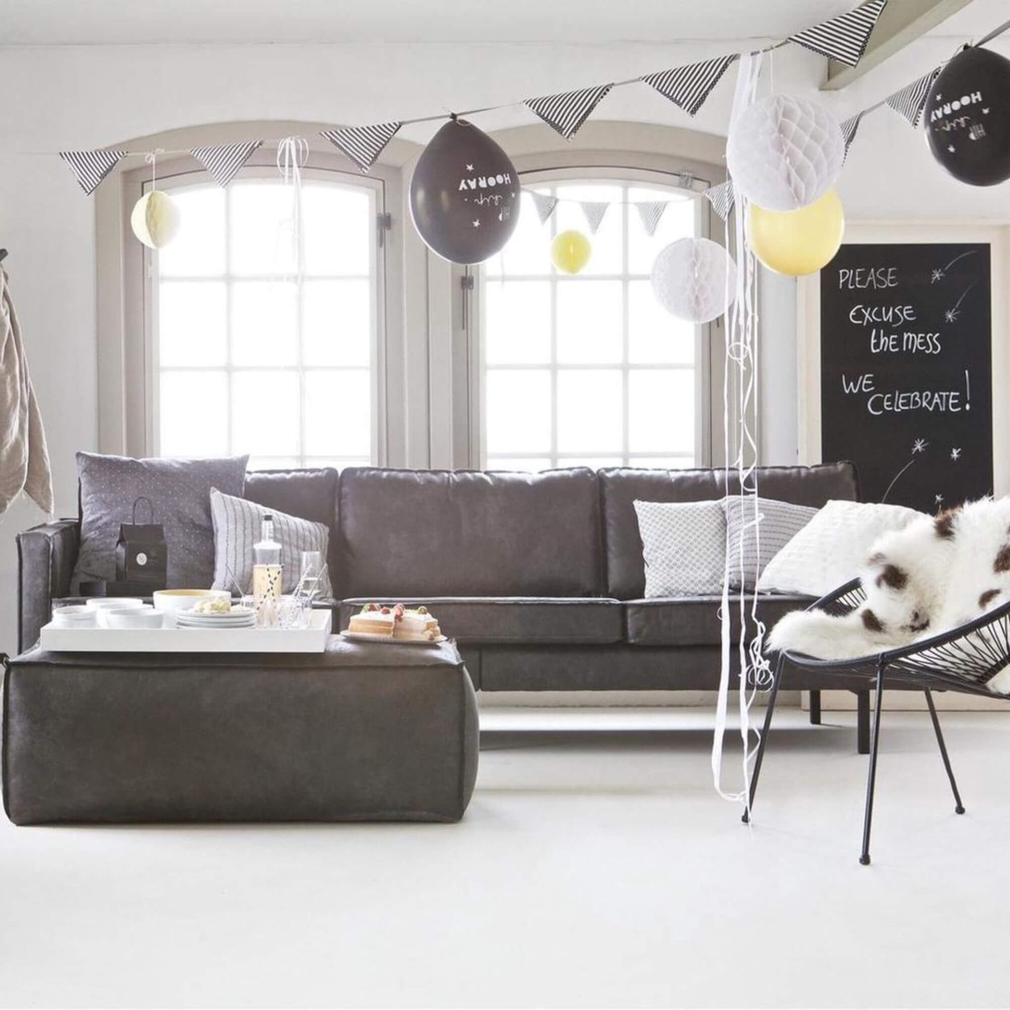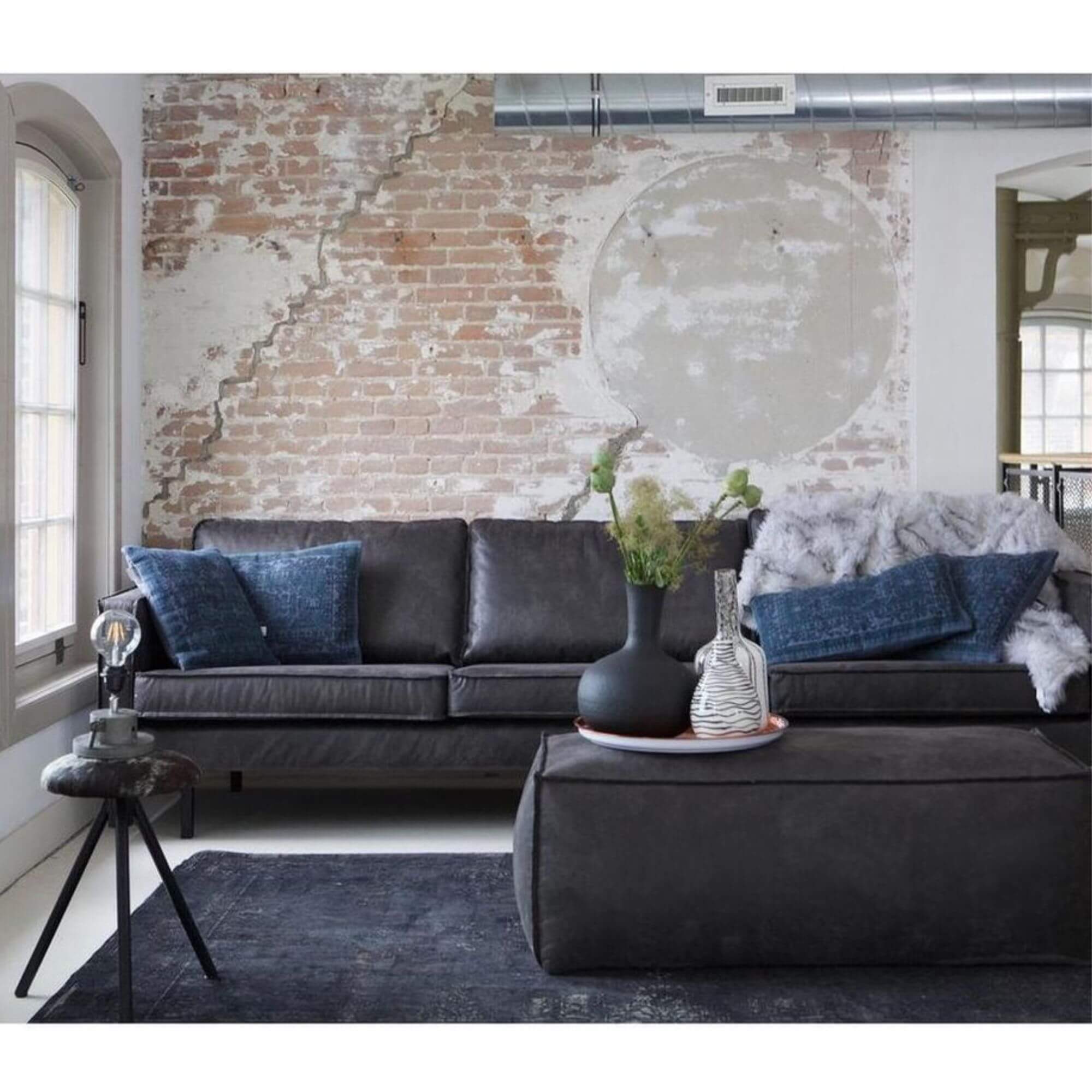 Grand pouf Cooper vintage – Noir/gris anthracite – 120 cm