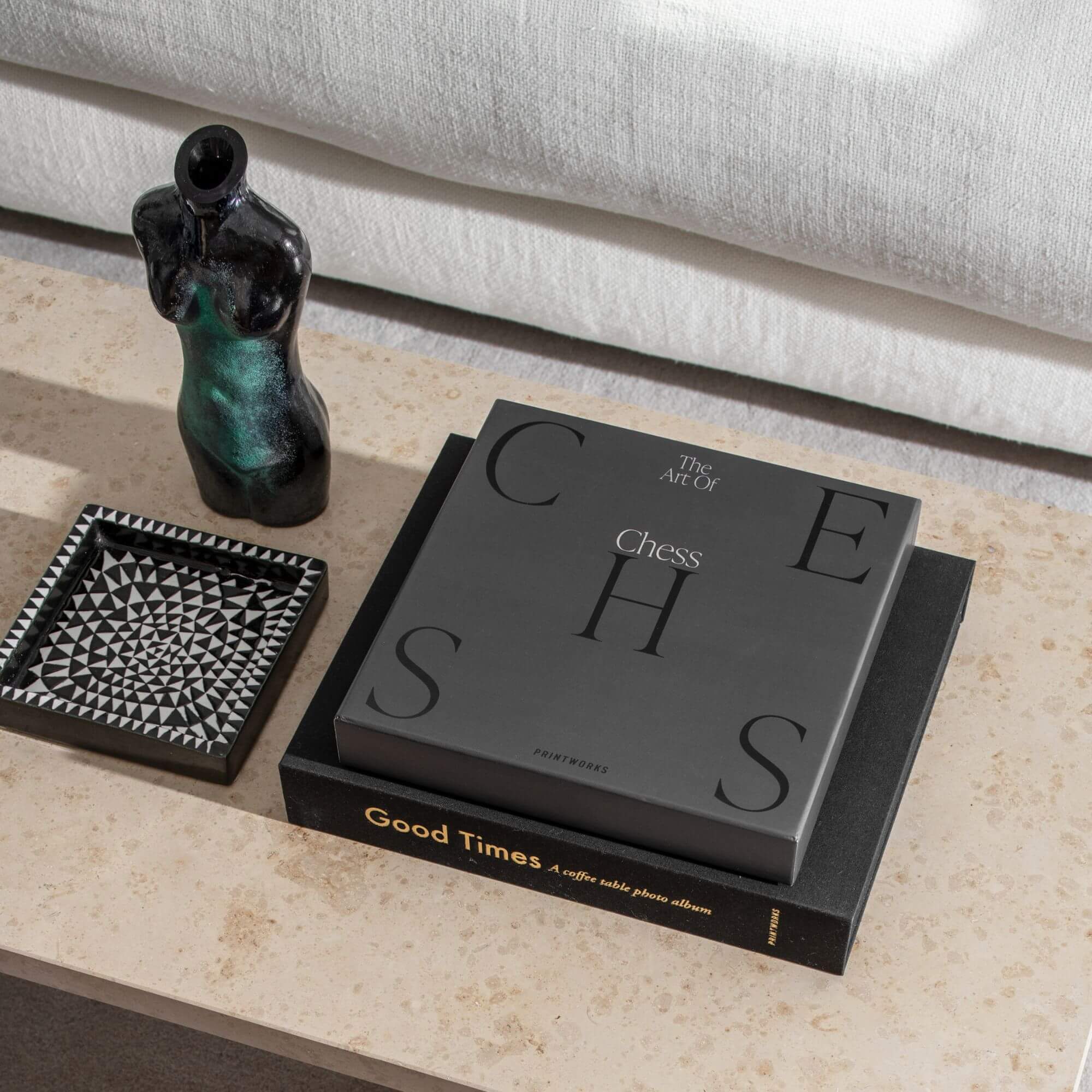 Découvrez Art of Chess, une édition spéciale de notre jeu d’échecs classique. Ce design raffiné inclut des pièces et un plateau en bois recouvert d’une fine couche d’acrylique pour un effet miroir élégant. La boîte artistique de haute qualité arbore un marquage noir et argenté raffiné. Des instructions faciles à lire sont disponibles en anglais, français et allemand. Conçu pour deux joueurs à partir de 5 ans, ce jeu fait partie de notre collection Coffee Table Games, alliant esthétique intemporelle et élégance contemporaine. Idéal pour jouer ou décorer, il constitue un cadeau parfait pour Noël ou un anniversaire.