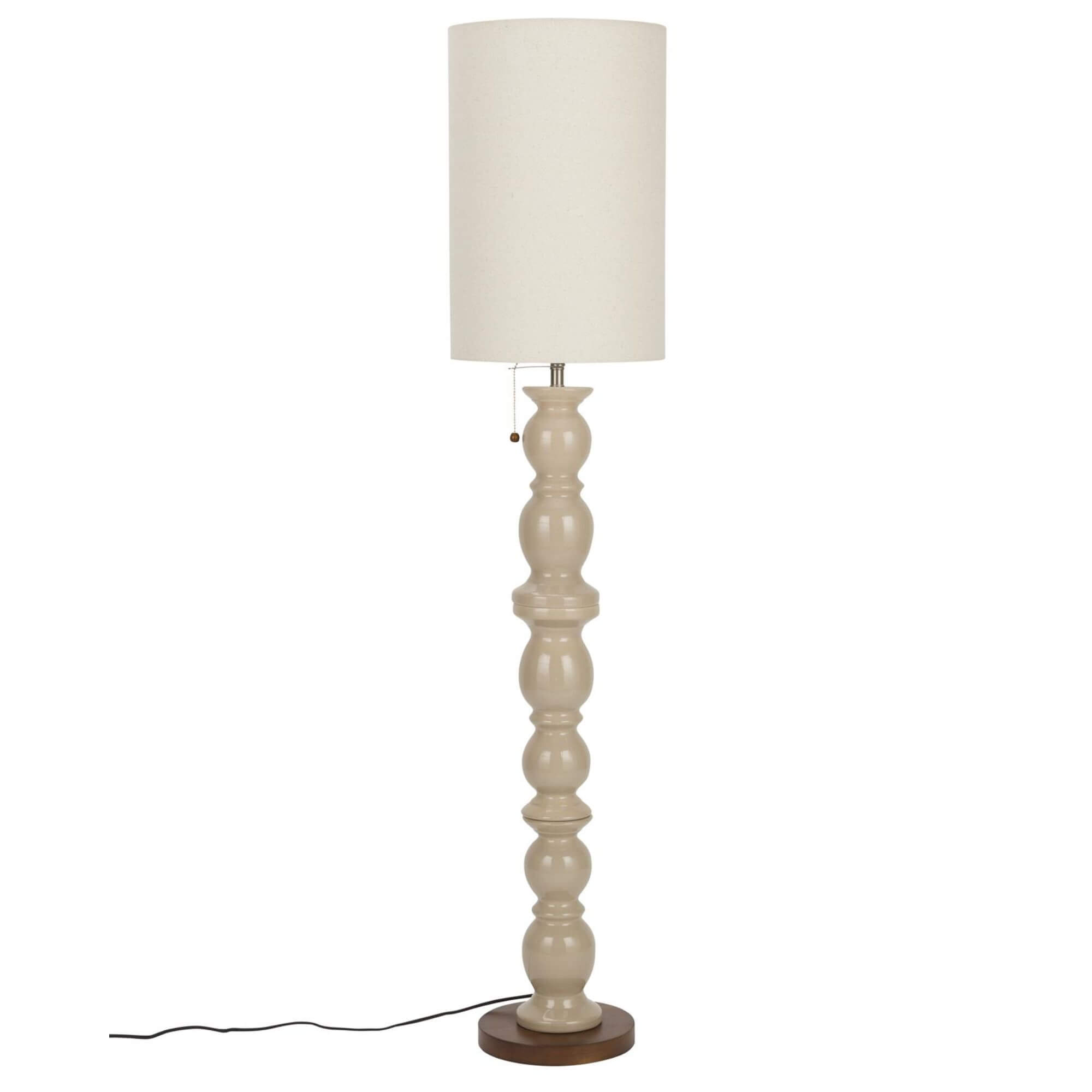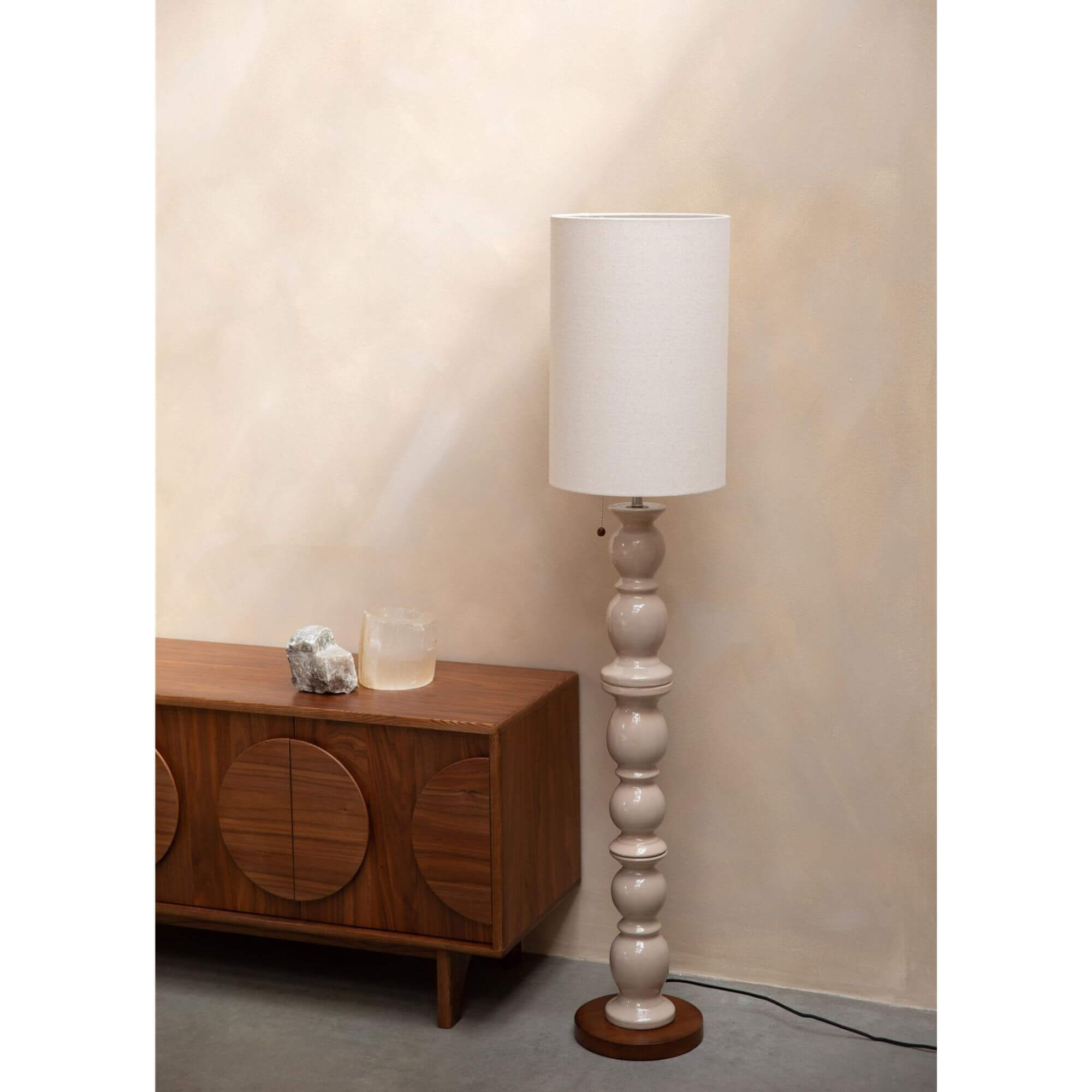 Si le lampadaire Brew vous donne soudainement envie d’un Latté bien mousseux, ce n’est pas un hasard. Son pied en céramique brillante s’inspire de tasses à café empilées, clin d’œil subtil aux pauses gourmandes et aux moments cosy. Associé à une base couleur noyer et à un abat-jour en lin, il affiche des tonalités chaleureuses qui rappellent les nuances d’un bon café.