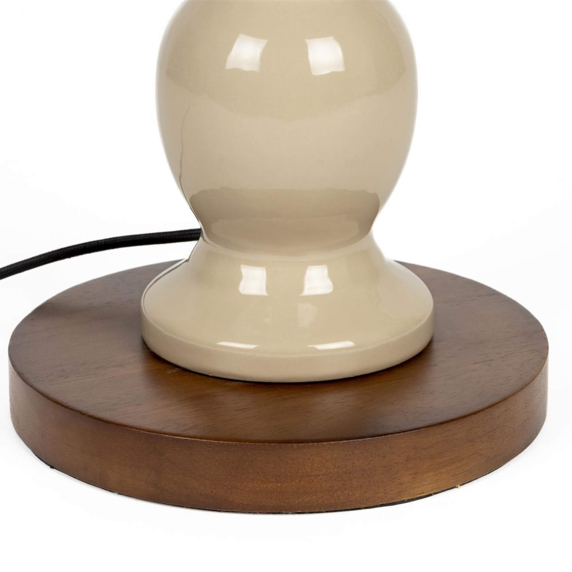 Stable et élégant, son pied en céramique repose solidement sur sa base en bois, tandis que son abat-jour diffuse une lumière douce et enveloppante. Petit détail charmant : il s’allume et s’éteint grâce à un cordon en fer, à l’ancienne .. un geste simple, presque nostalgique.