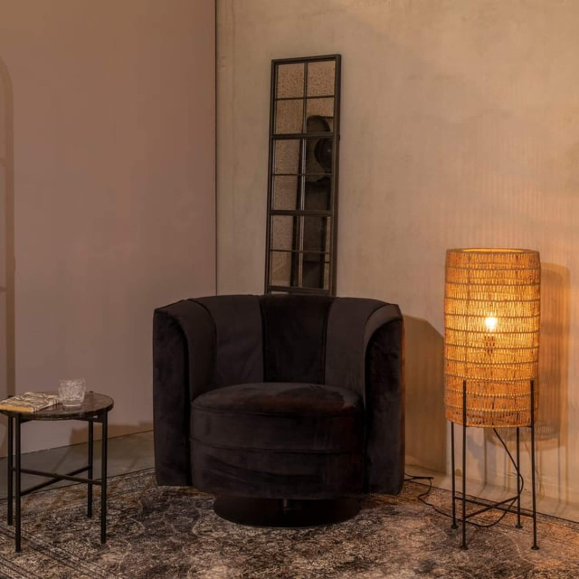 À mi-chemin entre bohème et modernité, le lampadaire Kari joue avec les contrastes et le fait très bien. Sa structure en métal noir apporte du caractère, tandis que son abat-jour en corde de jute naturelle adoucit l’ensemble avec une touche authentique et chaleureuse. Un mélange de matières qui équilibre force et douceur, sans jamais en faire trop.