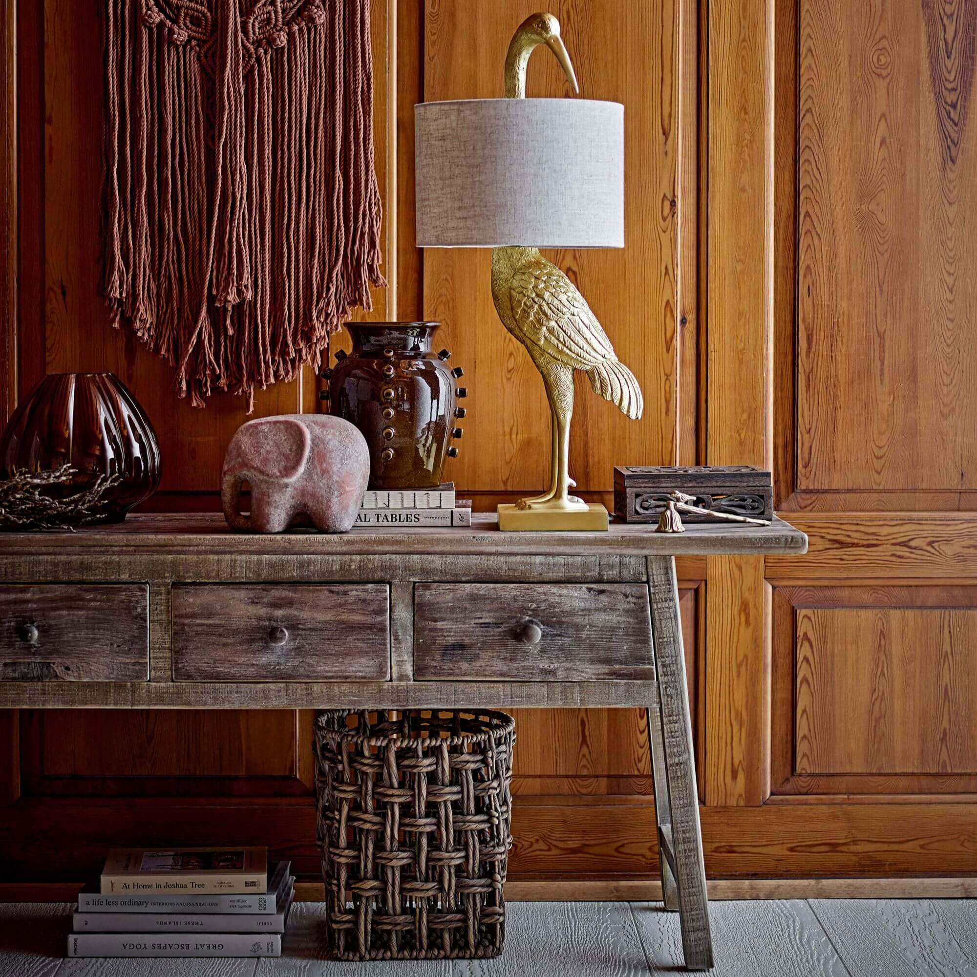 La Lampe de table Heron est une véritable œuvre d’art. Cette lampe de table vibrante prend la forme d’un oiseau doré, agrémenté d’un abat-jour en lin.